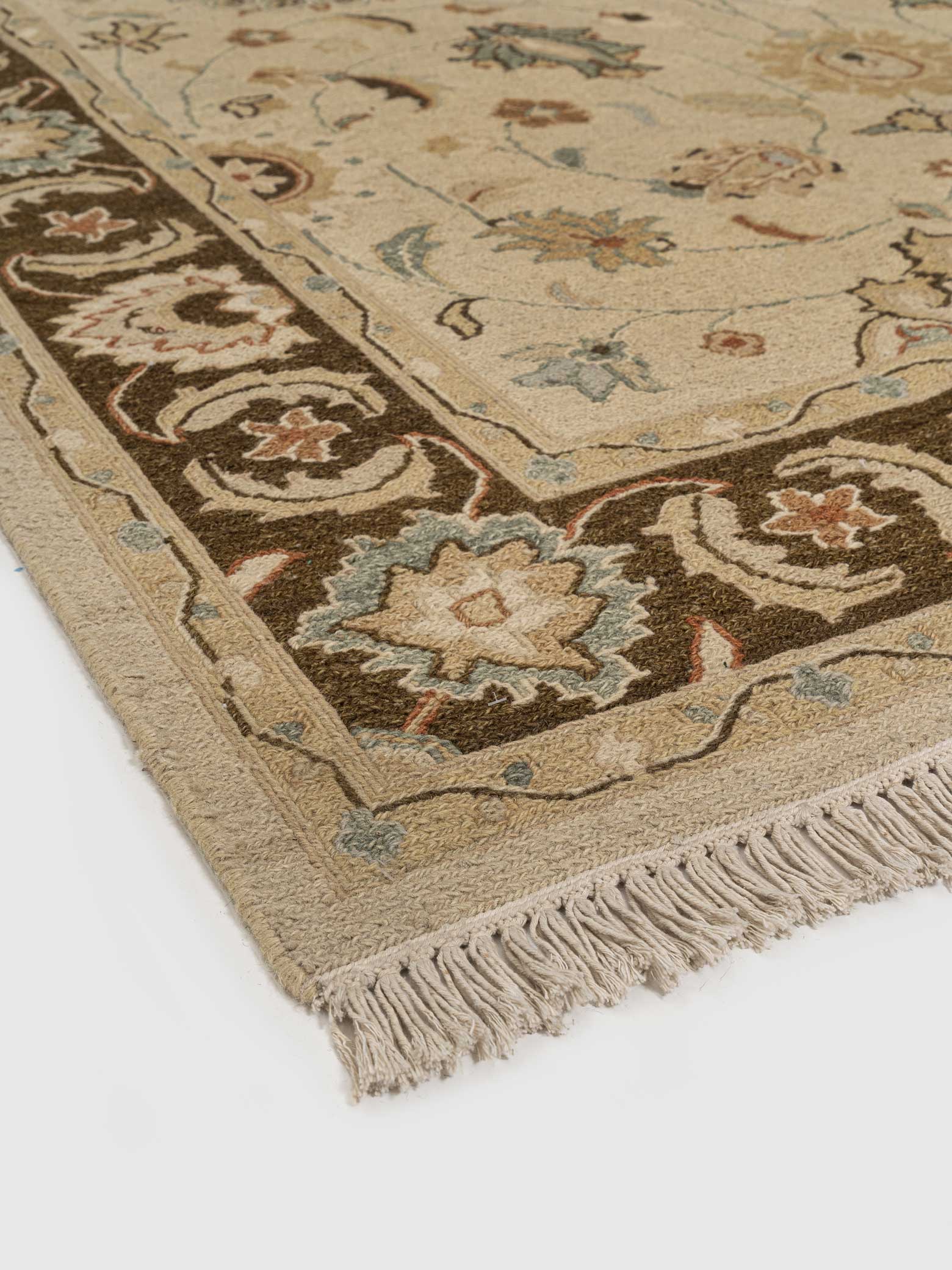 Enhance your space with the Celtal Rug, featuring an elegant floral design and a richly contrasting border of shades of brown. This wool rug adds a layer of luxurious comfort and classic style to the room, making it a perfect choice for those who appreciate the beauty of traditional craftsmanship and timeless design.