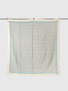 The Bedtime Calm Printed Quilt brings a quiet sense of peace to your home with its soft colours and delicate hand printed detailing. The soothing neutral field is framed by a subtle yellow border and a fine teal accent, creating a balanced, calming palette that instantly relaxes the eye. Its intricate pattern, printed by hand using traditional blocks, adds depth without overwhelming the simplicity of the design.