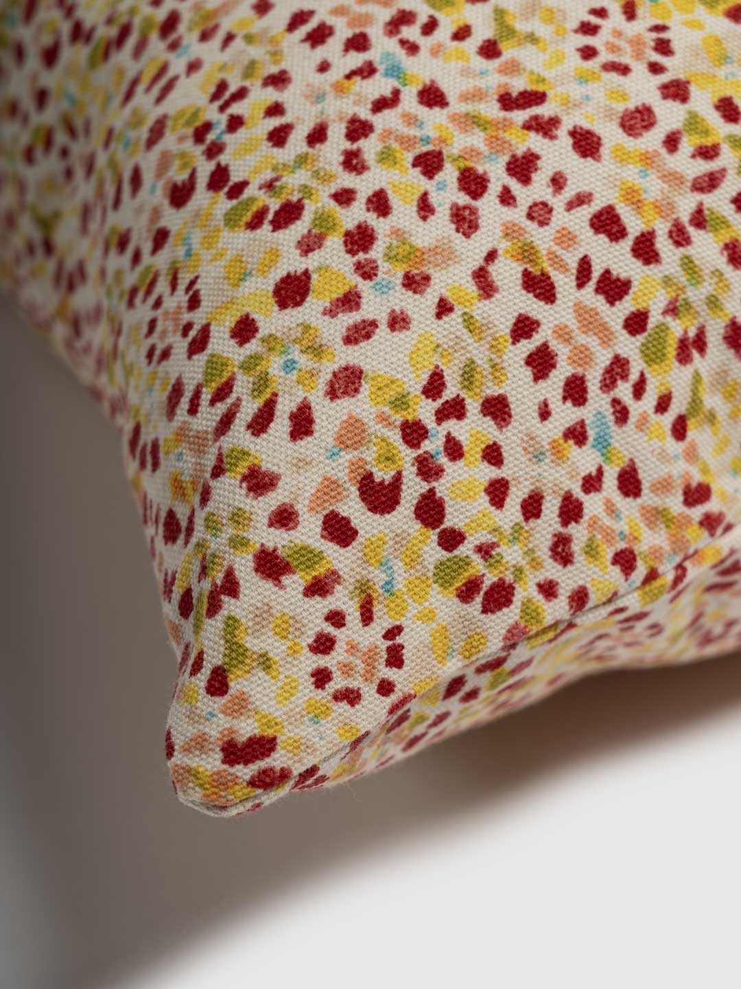 Brighten up your space with this vibrant Floral Cushion Cover, featuring a lively multicolor pattern in red, yellow, and green hues on a soft white background. Perfect for adding a splash of color and charm to any room, this cushion cover is an ideal accent for your home decor.