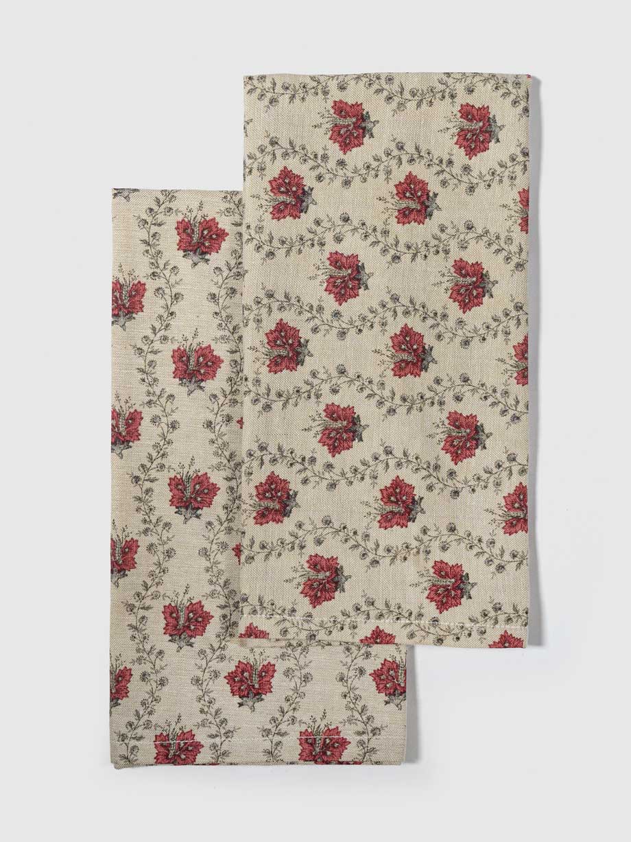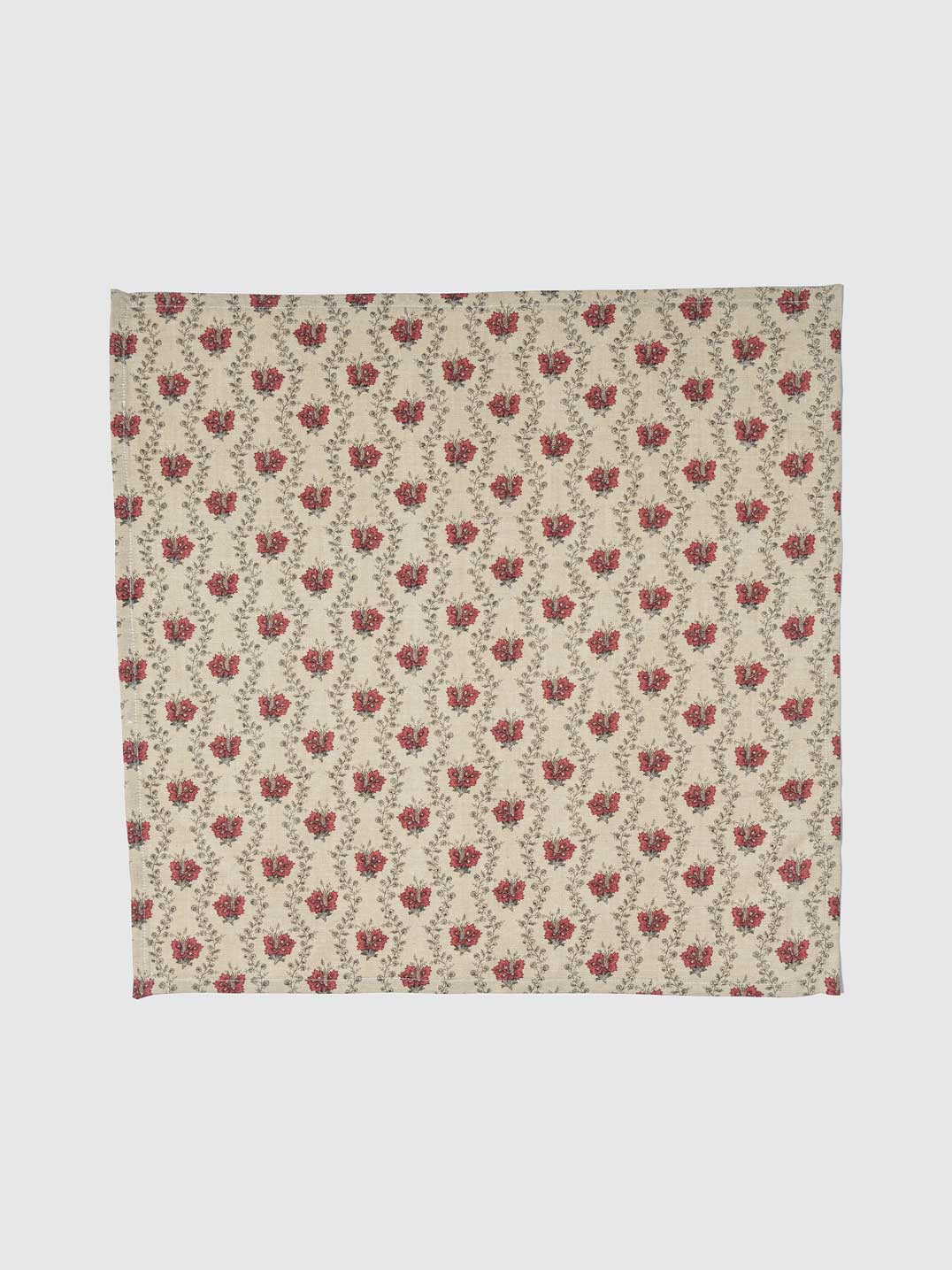 Elevate your dining ambiance with this charmingly crafted napkin, boasting a quaint pattern of tiny, crimson florals set against a crisp white background. Its delicate design brings a touch of sophistication and a splash of color, perfect for everyday meals or special occasions.