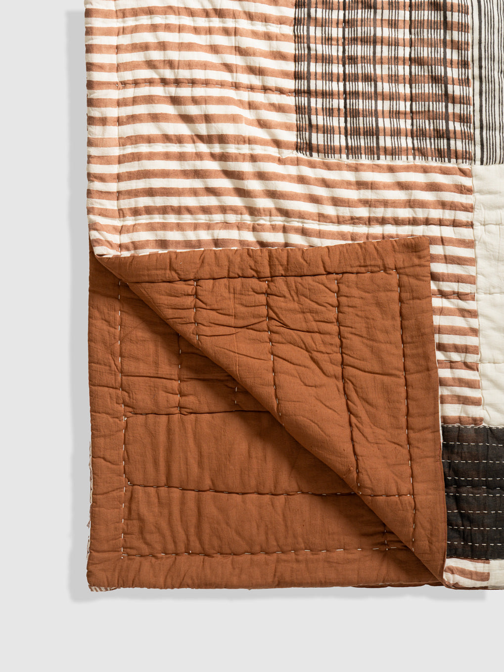 The Delphora Cotton Printed Quilt is a statement of artistry and comfort. Designed with bold linear prints in neutral and terracotta tones, it complements modern and minimal interiors effortlessly. Handcrafted from fine cotton, this quilt ensures breathability and softness, ideal for year-round coziness. Durable stitching and timeless aesthetics make it not just a quilt, but a versatile layer of warmth and sophistication for your home.