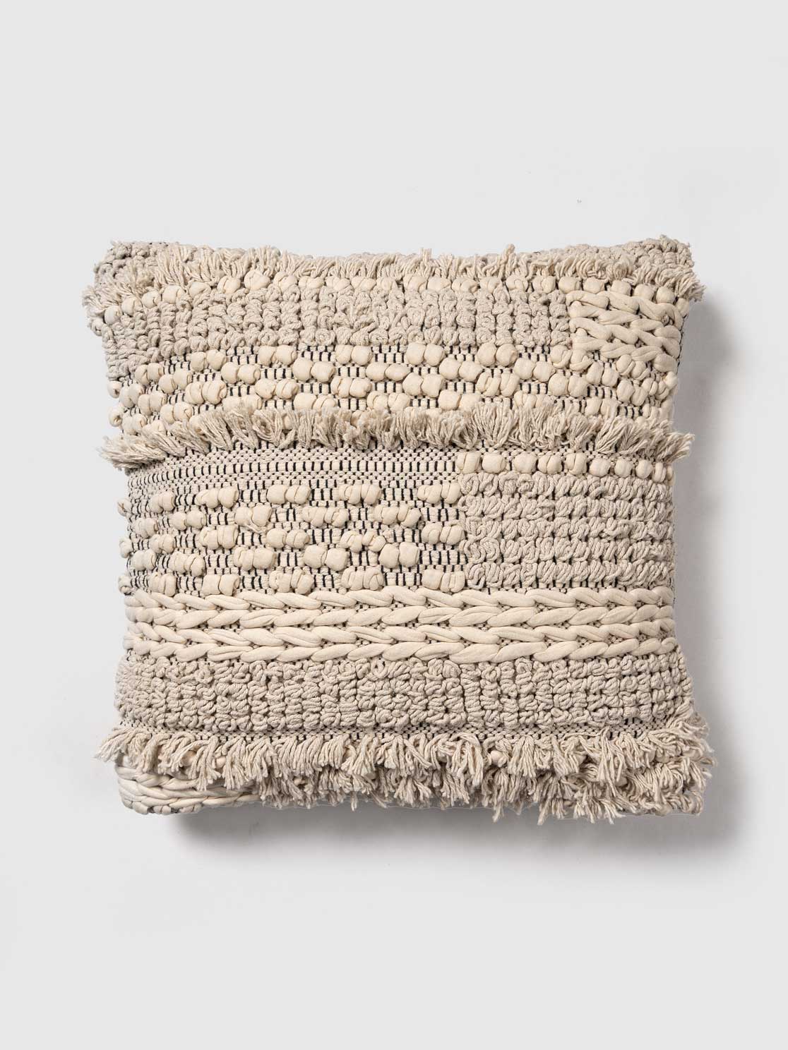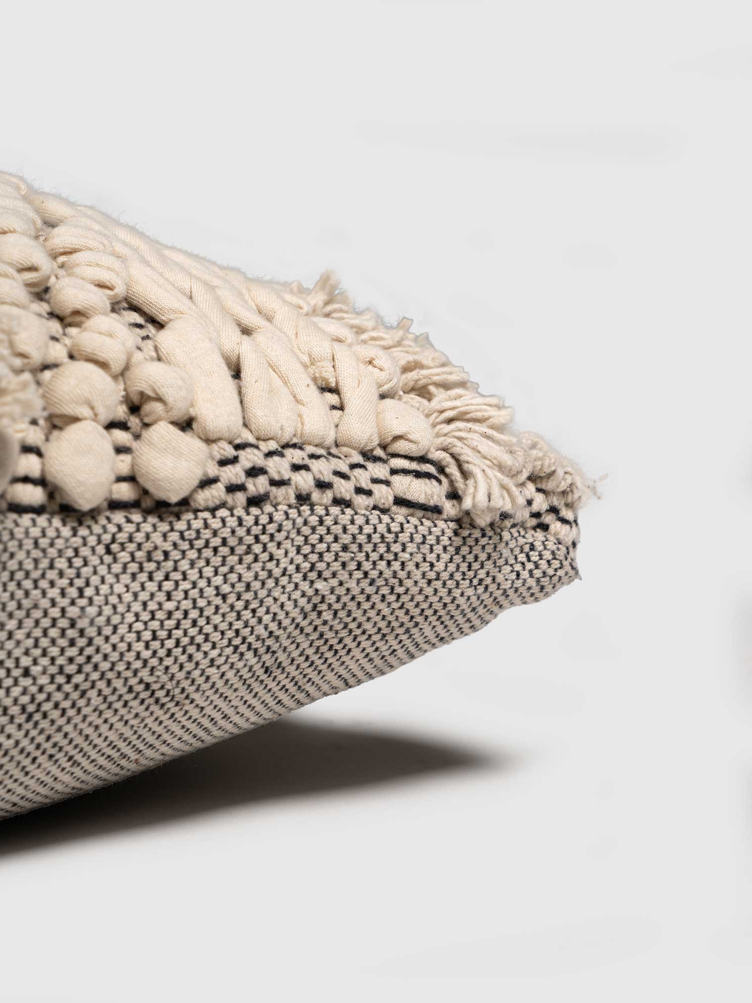 Display your design prowess with the Fili Cushion Cover, a premium accessory that adds depth and character to your decor with its detailed pattern and fringe.