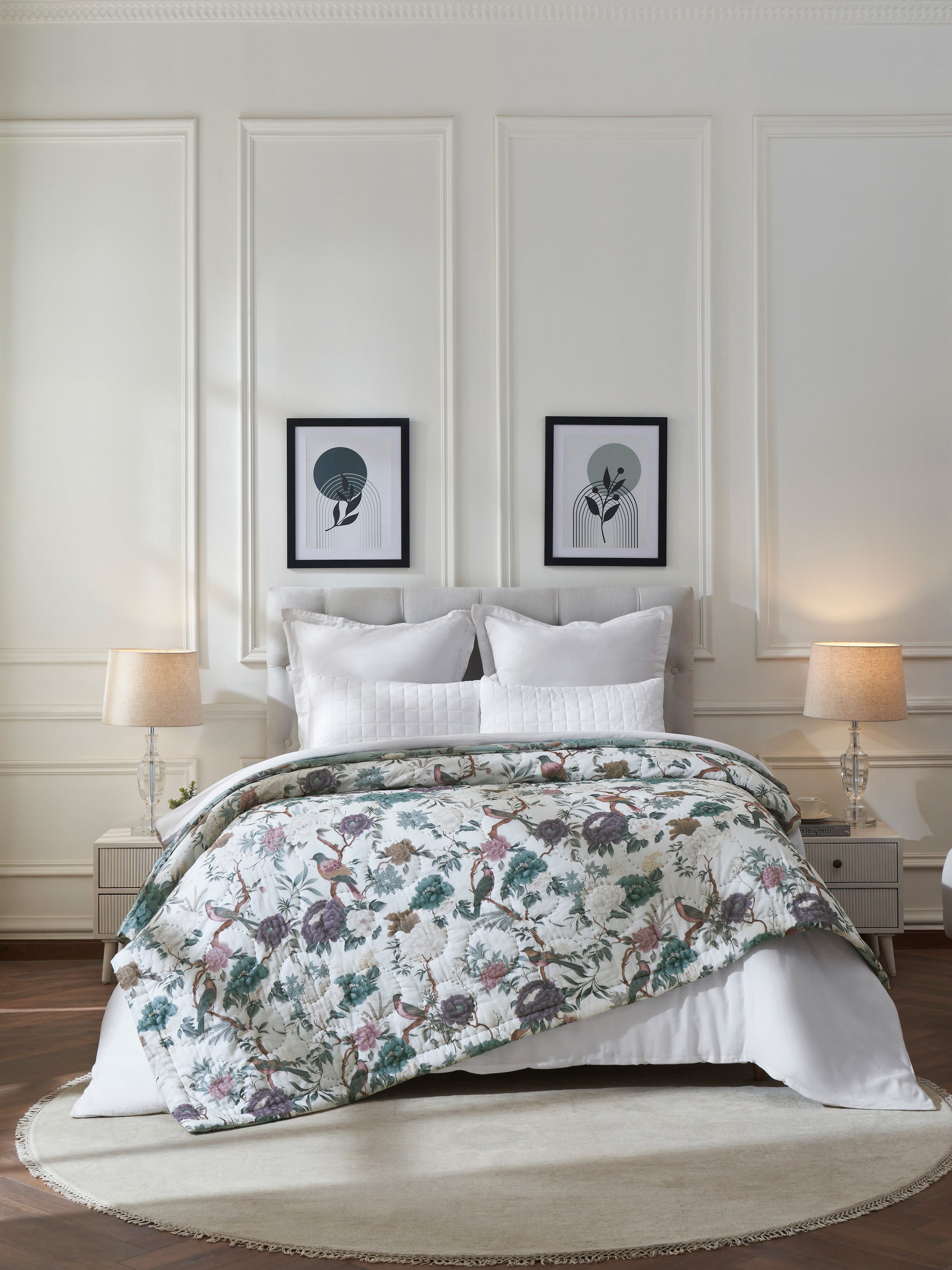 Perfect for bedrooms that embrace nature, serenity, and refined design, the Gardenia Quilt adds warmth, elegance, and a touch of timeless storytelling to your home.