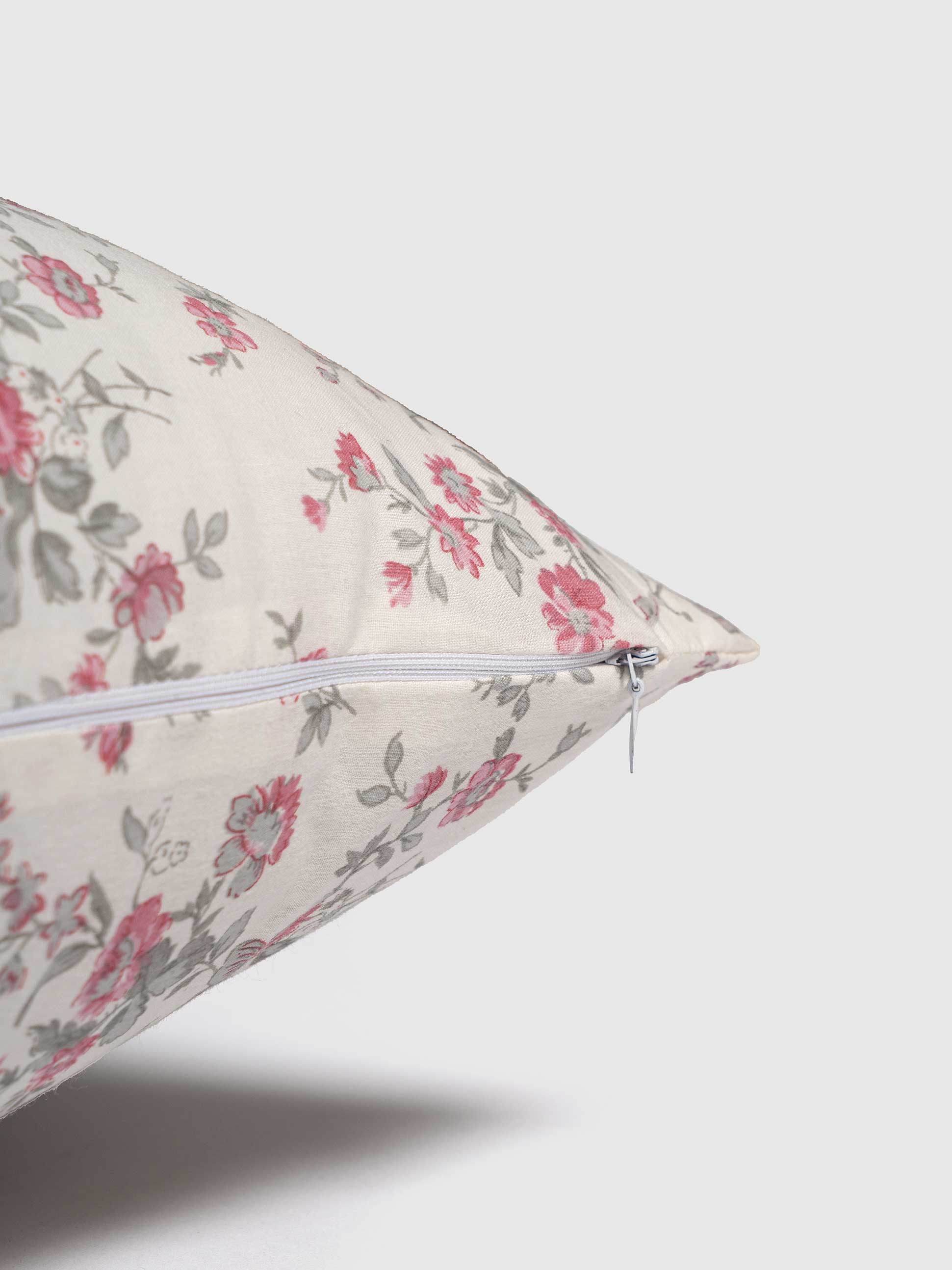 Enliven your living space with this exquisite digital-printed Cushion Cover made from superior-quality poplin. Its intricate floral pattern in vibrant pink and grey hues exudes elegance, transforming any room into a more inviting and stylish setting. Perfect for those seeking to add a touch of sophistication and charm to their decor.
