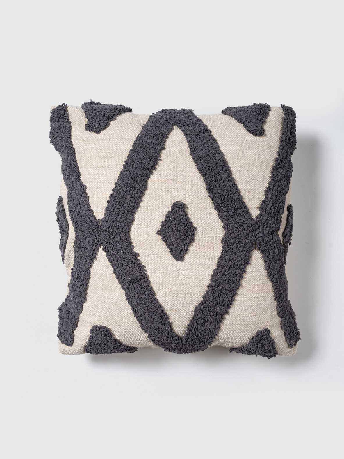 Introduce a unique blend of art and comfort to your home with this cushion cover, featuring a bold geometric design in charcoal gray on a soft off-white backdrop. Its textured pattern adds contemporary flair, making it perfect for elevating sofas, chairs, or beds with a modern, minimalistic touch.