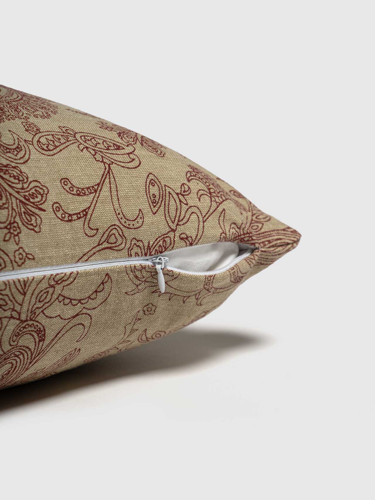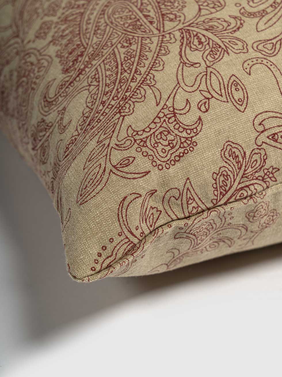 Bring a touch of traditional charm to your home with the Lawson Cushion Cover. Featuring a rich tapestry of maroon paisley patterns on a light fabric, it exudes sophistication and classic style making it a versatile accessory for multiple styles and spaces.