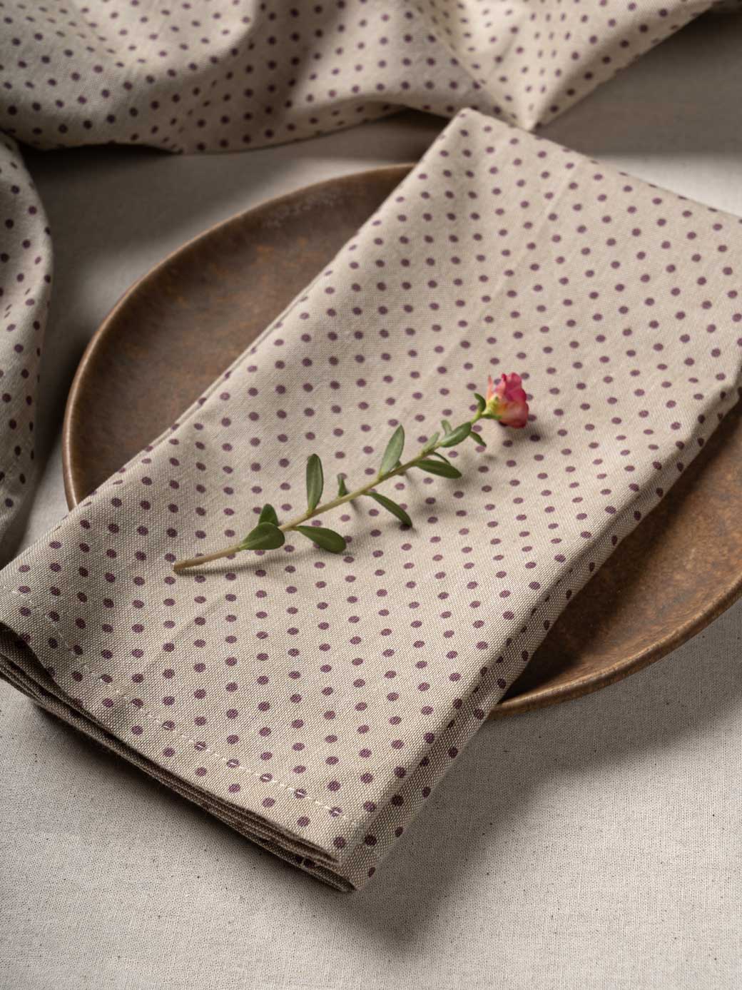Add a playful touch to your dining experience with this charming digital printed napkin. Its minimal background is designed with a contrasting dotted design, making it a cheerful addition to any table. Ideal for family gatherings, it brings a fun, light-hearted vibe to your decor.