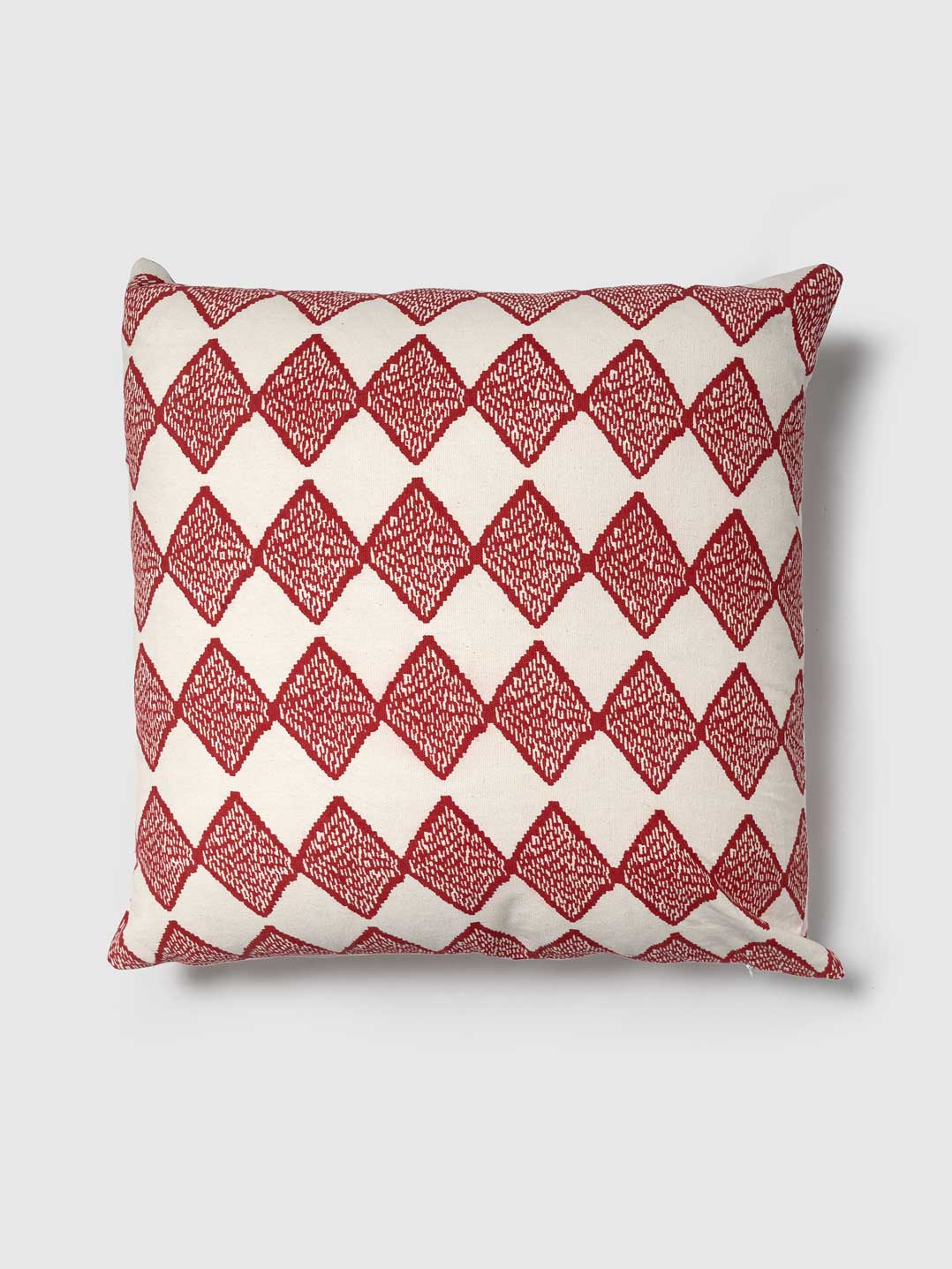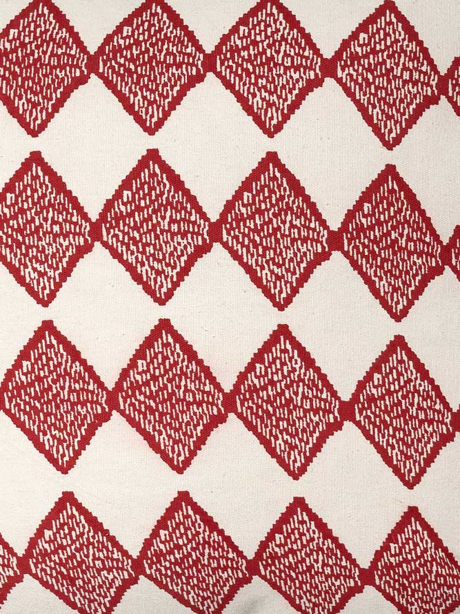 Enhance your home decor with this stylish, deluxe cushion cover that combines contemporary aesthetics with traditional craftsmanship. Made by Contrast Living, this cushion cover features a vibrant red and white geometric pattern, expertly crafted for a modern touch. The intricate design adds a lively and elegant flair to any room.