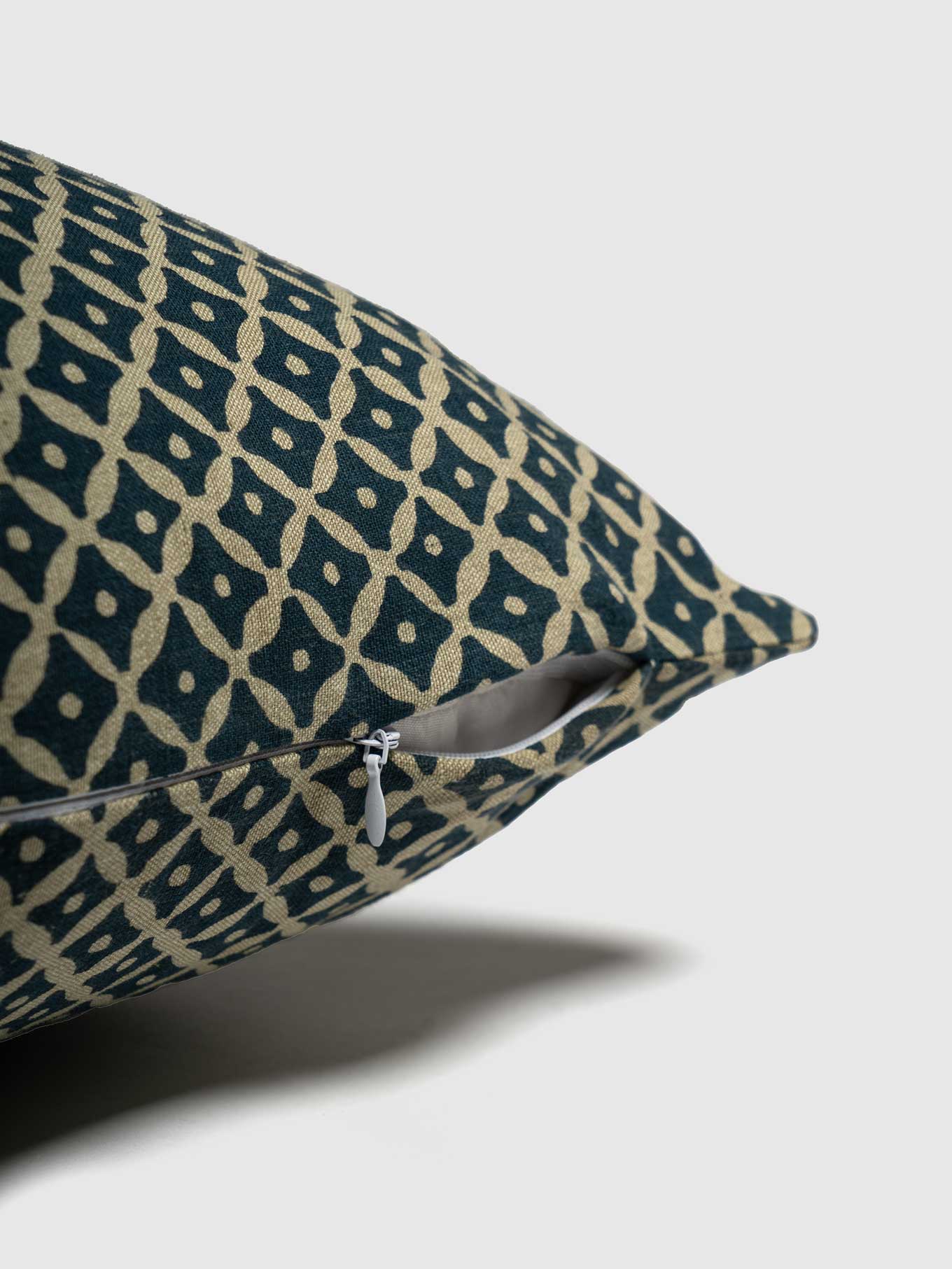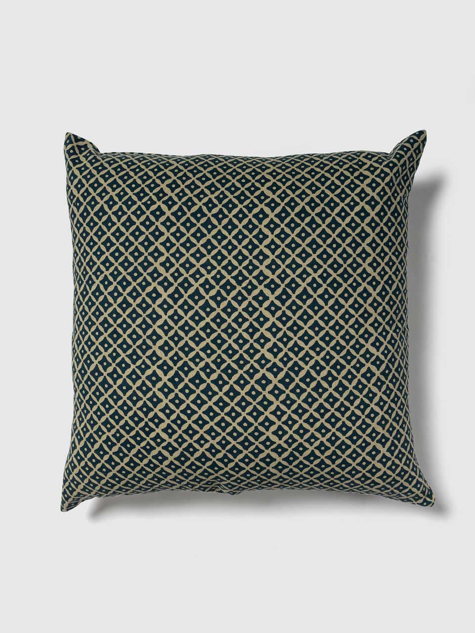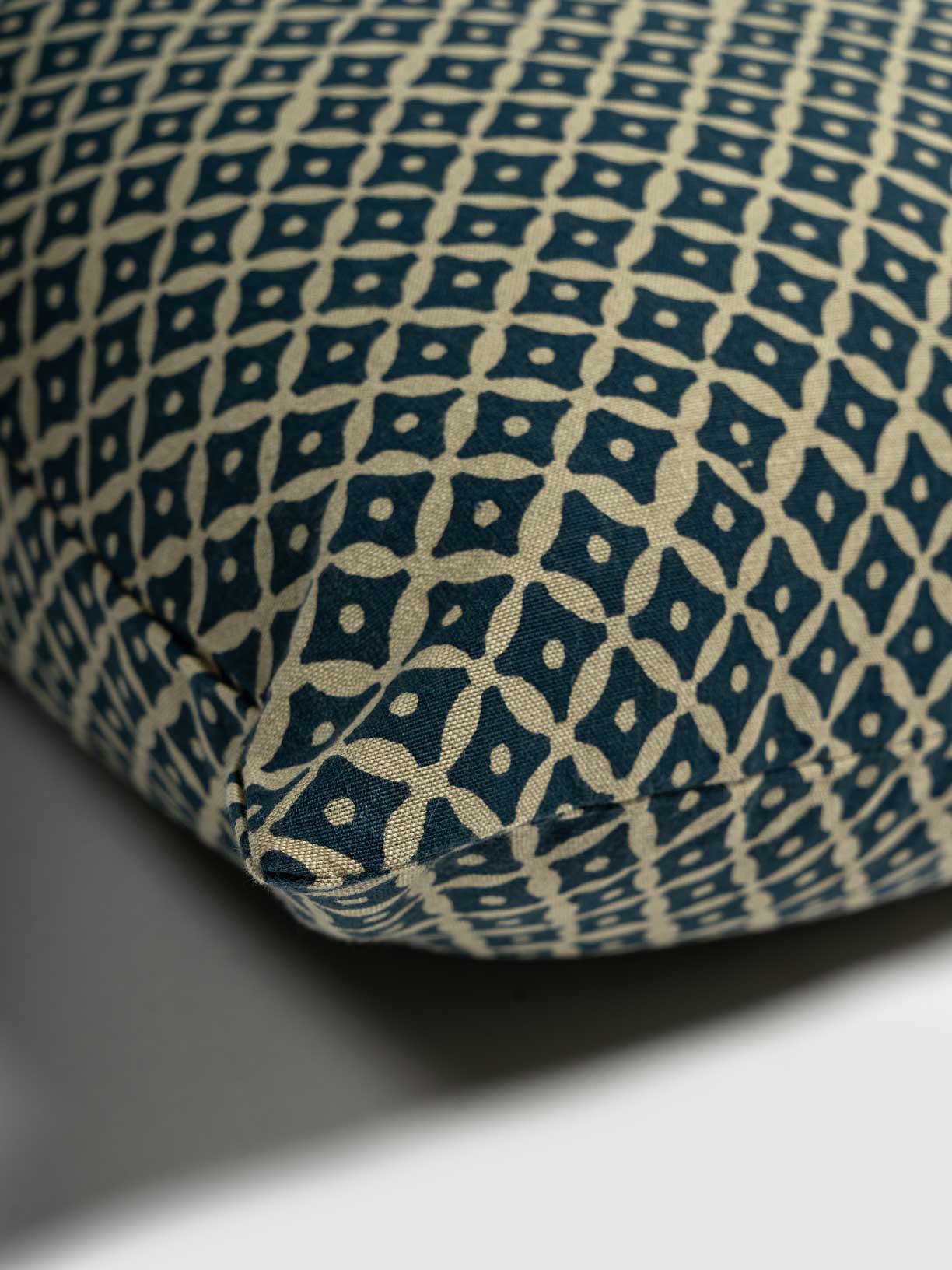 This eye-catching Cushion Cover features an intricate navy blue geometric pattern on a beige background, adding a touch of elegance to any decor. Made from premium quality fabric, it offers both durability and comfort. Ideal for modern and traditional settings, this versatile cushion cover enhances your home with its stylish design and sophisticated appeal.