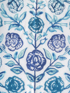 The Sanganeri Rose Printed Quilt captures the timeless beauty of Rajasthan’s celebrated Sanganeri printing tradition. Its soft ivory base is covered in bold hand printed rose motifs in shades of indigo, teal and deep blue. The large floral patterns create an expressive yet graceful look that fills a room with freshness and artisanal charm.