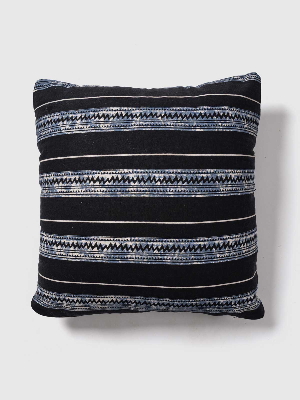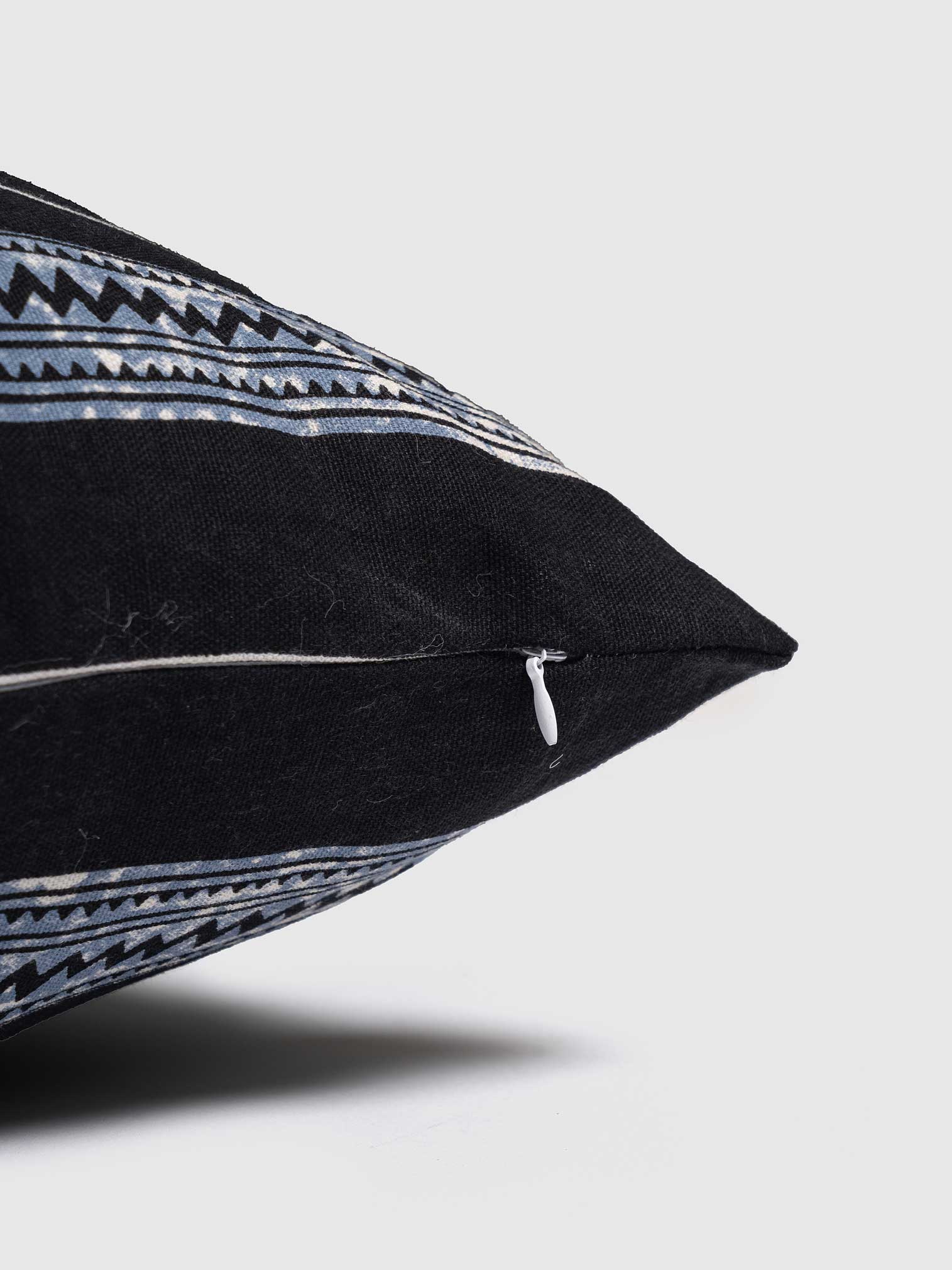 This striking cushion cover features a bold black backdrop accented by intricate blue and white tribal-inspired patterns. Perfect for adding a touch of global chic to your home decor, it is crafted from premium fabric. This versatile cover enhances the visual appeal of sofas, chairs, and beds, creating a cozy yet stylish atmosphere.