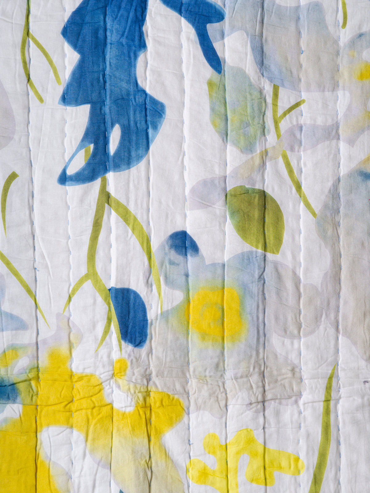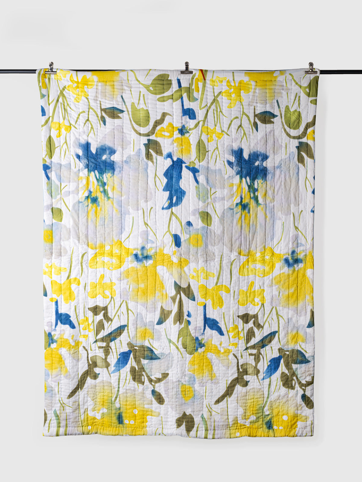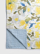 Bring home the freshness of a new season with the Spring Meadow Bloom Printed Quilt, a hand-quilted beauty crafted to feel as light and joyful as a spring morning. Adorned with hand-printed florals in sunshine yellow, soft green, and calming blue, this quilt captures the gentle bloom of a meadow coming alive after winter.