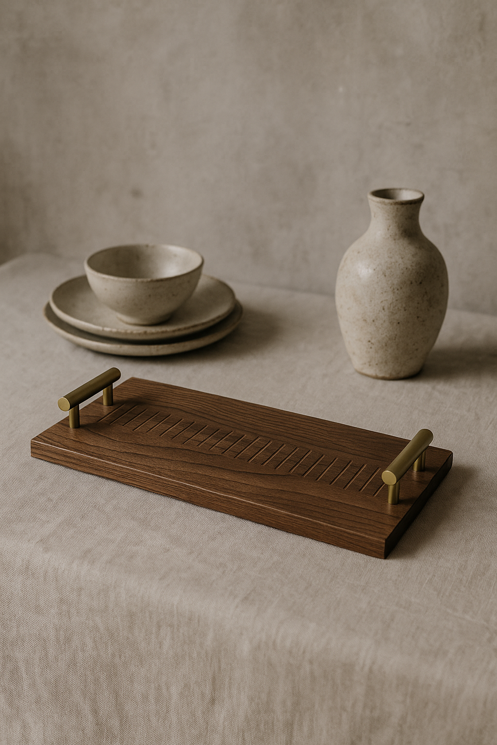 Experience the elegance of our finely crafted Wooden Tray, featuring a sleek, minimalist design with subtle engraved details. Its timeless beauty and functionality make it a versatile and sophisticated addition to your home.
