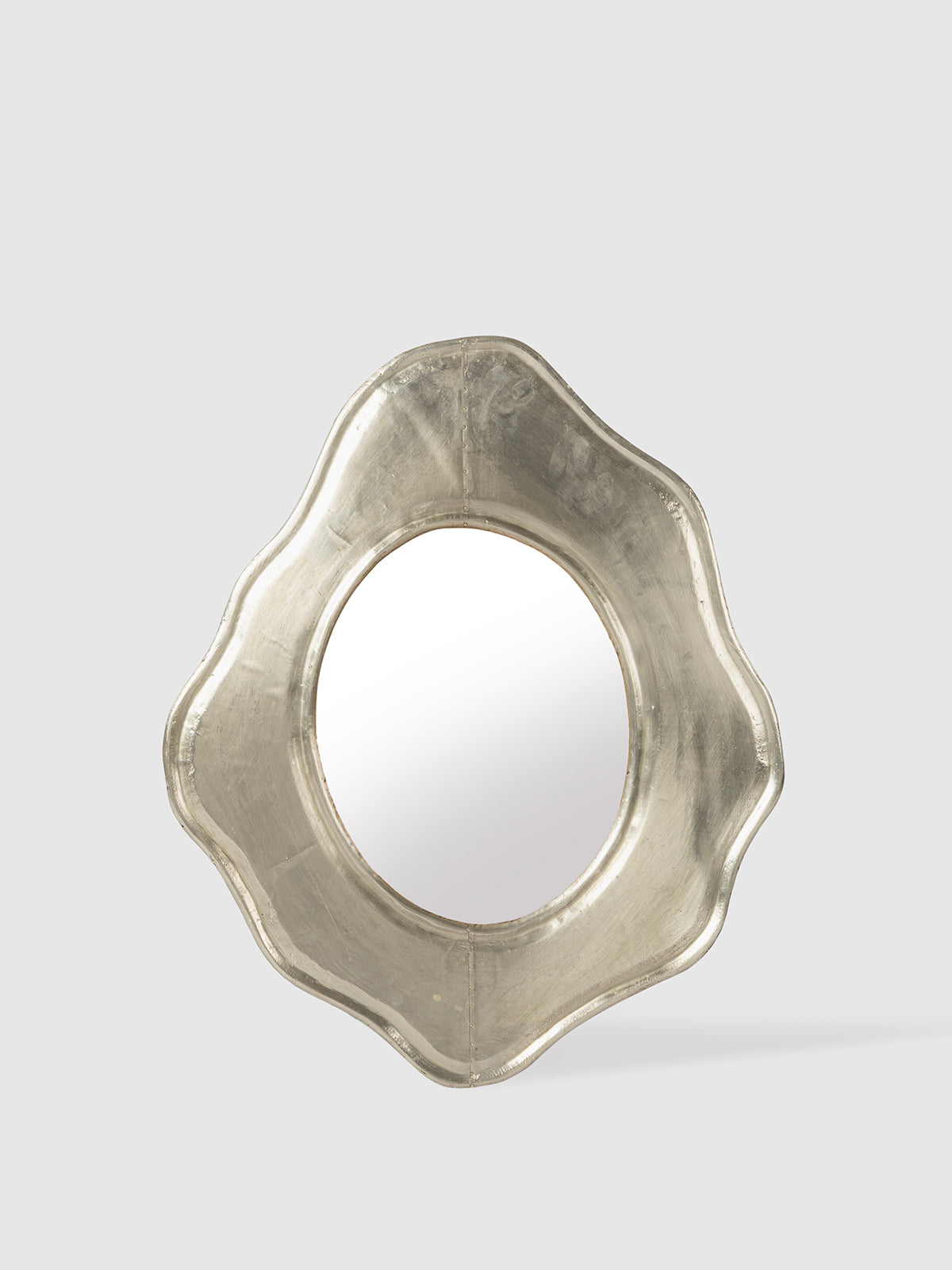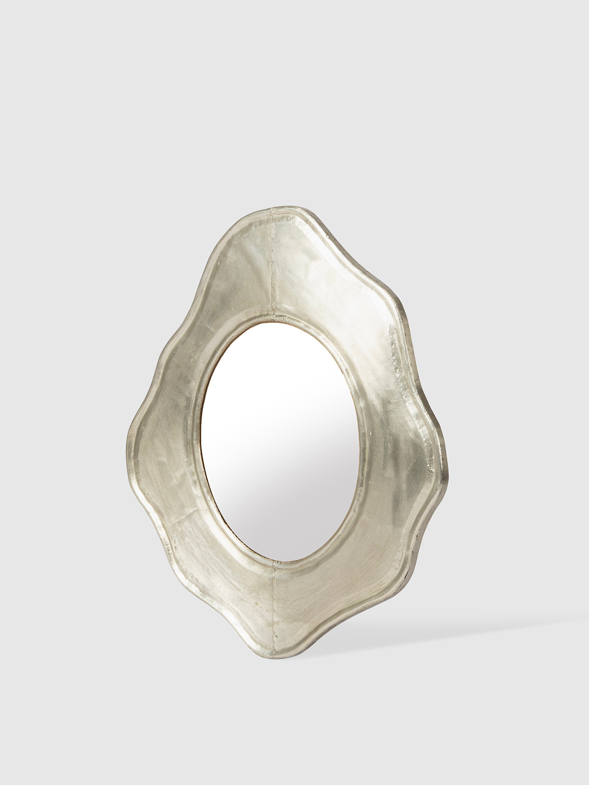 This mirror brings a soft, sculpted charm to your space with its petal-inspired white metal frame. The organic curves add a touch of artistry, while the warm metallic finish gives it a subtle glow that brightens any room. Perfect for entryways, bedrooms, or above a console, it works beautifully as both décor and a functional accent. A lovely piece that lifts the mood of your home with its gentle, handcrafted appeal—ready to make your walls feel special.