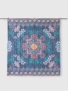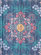 The Amber Serai Printed Quilt captures the magic of twilight gardens and ancient artistry through its deep, mesmerizing palette and intricate hand printed detailing. The quilt features a striking central medallion in warm amber tones, surrounded by lush floral clusters, leafy forms and delicate dotted patterns in shades of emerald, rose, mauve and cream. Set against a velvety midnight base, the design feels both dramatic and enchanting, like a secret garden glowing at dusk.