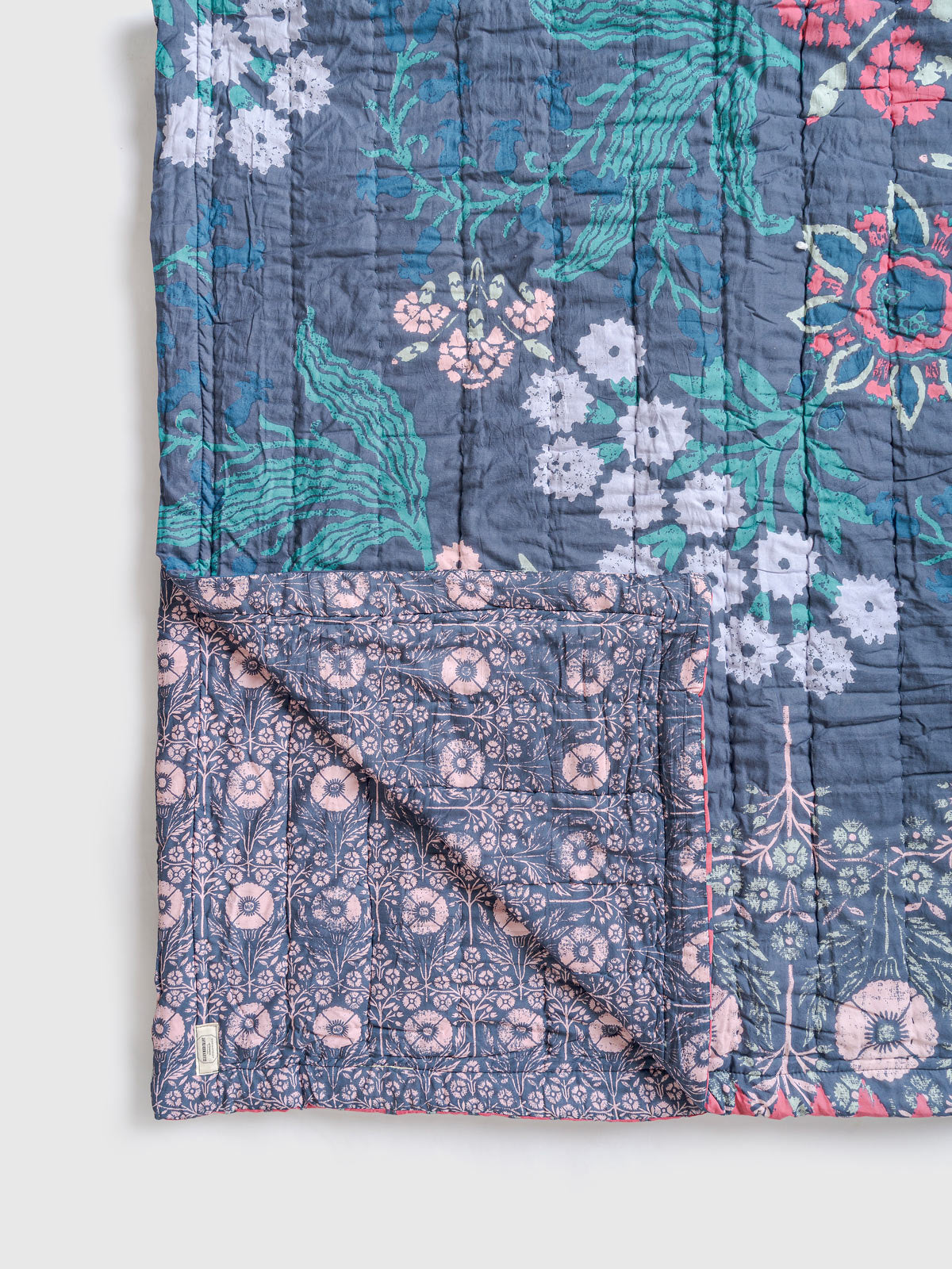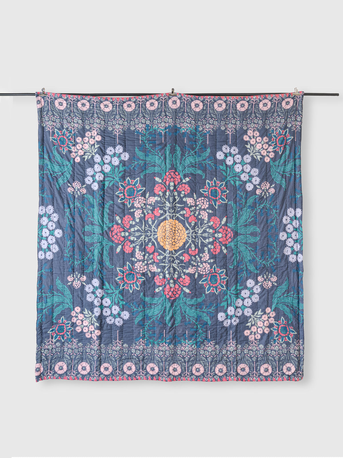Skilled artisans bring each motif to life using traditional techniques that create depth, movement and subtle variation across the quilt. Gentle hand quilting enhances the softness and breathability of the piece, giving it a light, comforting drape perfect for year-round use. The interplay of rich colours and ornate florals makes this quilt an elegant statement for any interior.