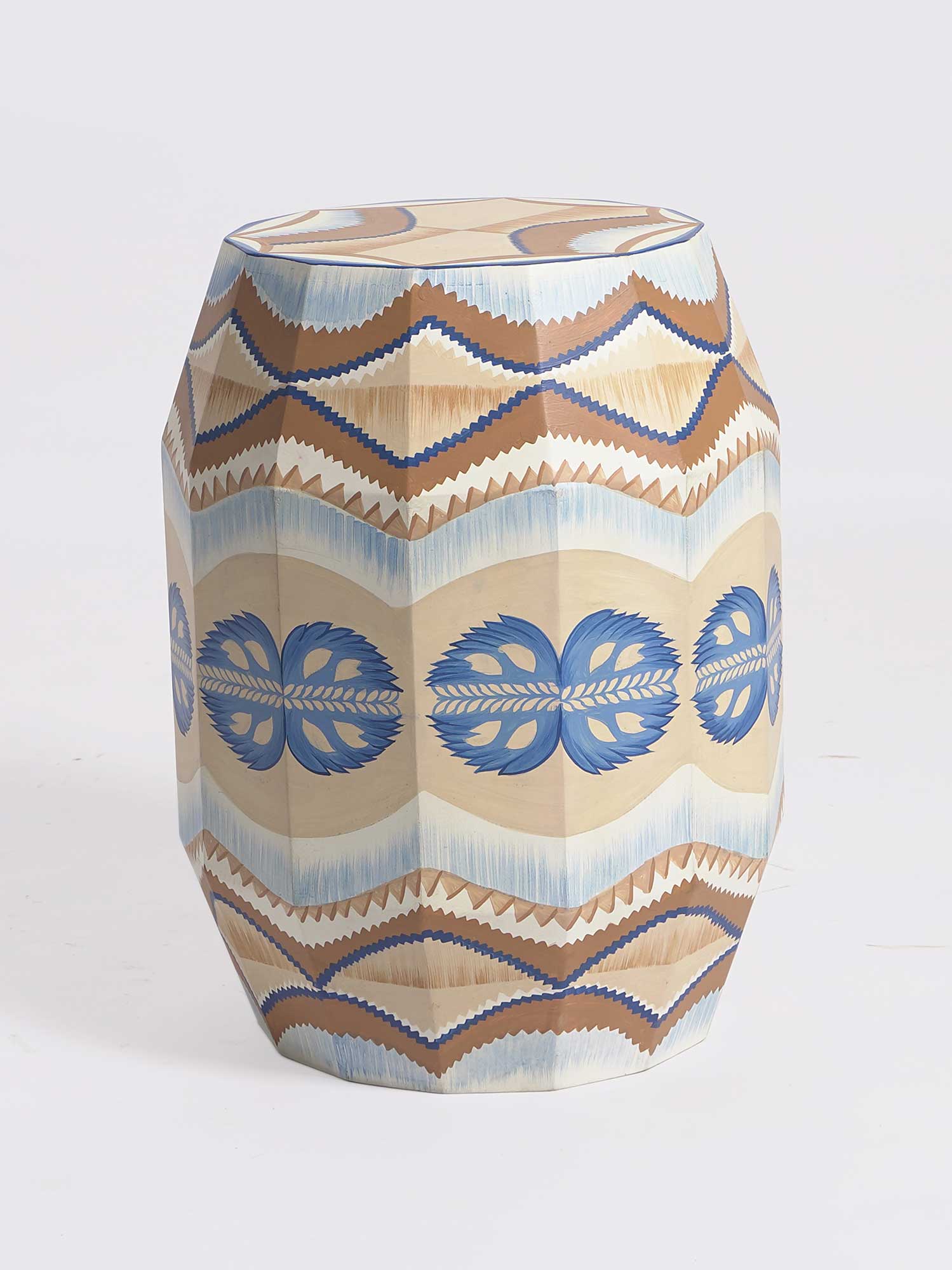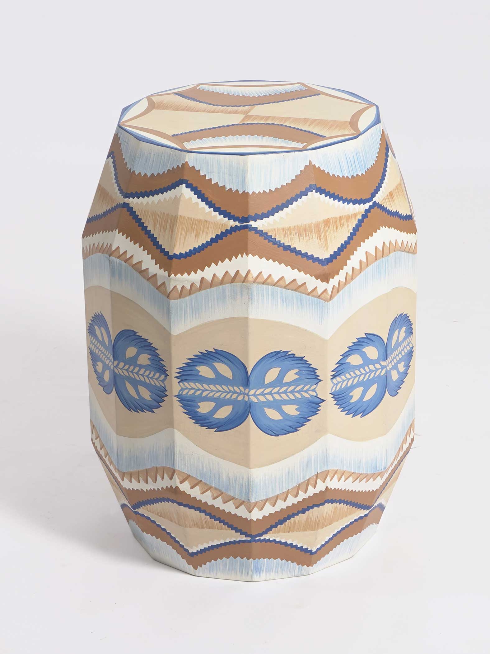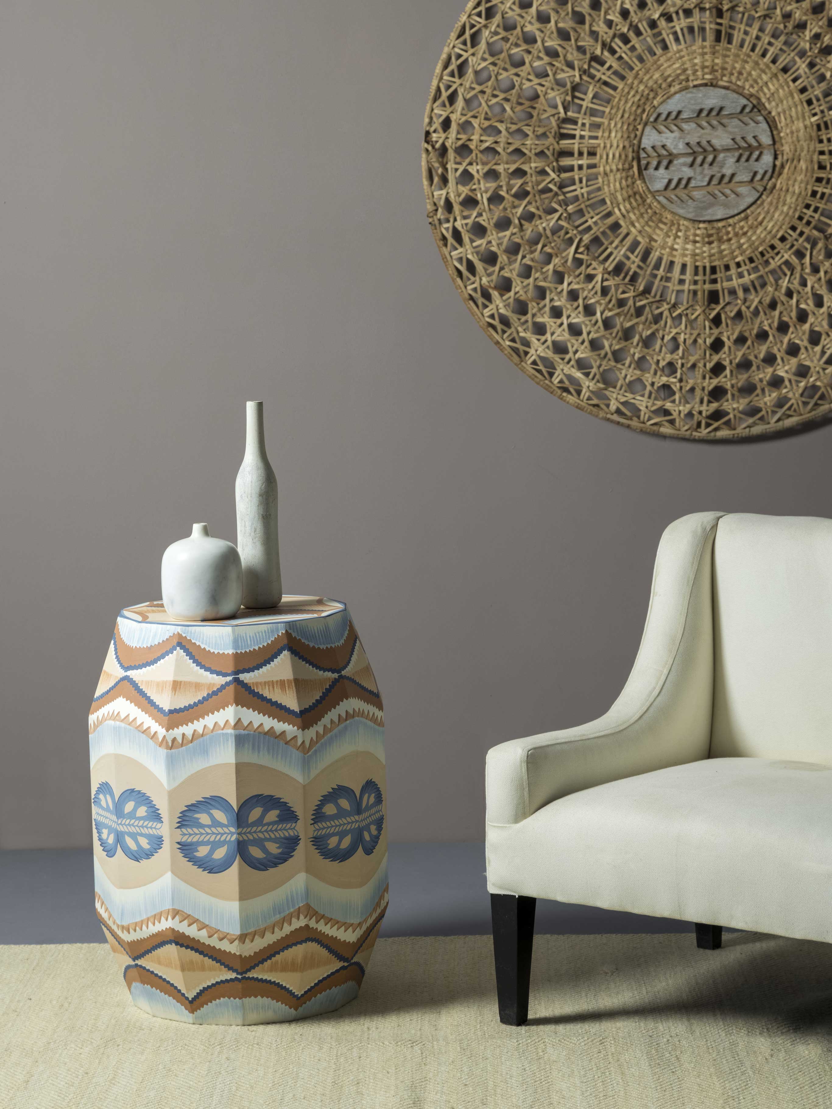 Featuring handcrafted details and vibrant colors, our hand-painted Side Table is a beautiful blend of soft and pastel colors. Its unique shape and the eye-catching geometric pattern offers a contemporary and relaxed user experience. Ideal for any room, it acts as a statement piece and provides an extra edge to the overall palette.