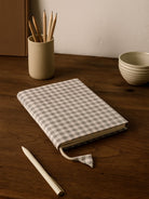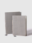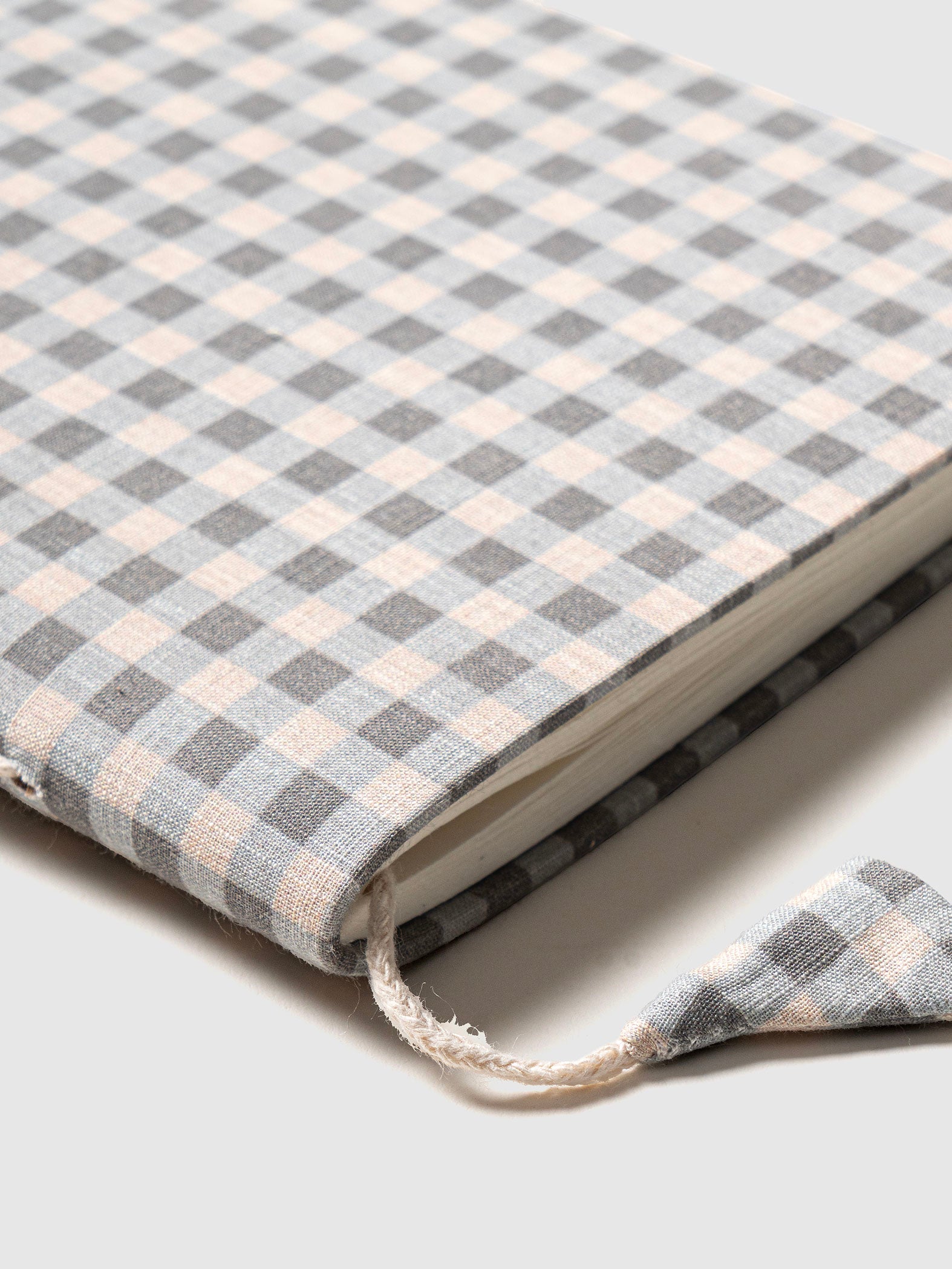 Elevate your journaling with this grey gingham notebook, wrapped in soft voile fabric for a light and airy feel. Perfect for writing, sketching, or daily planning, it features a tasseled bookmark for easy use. A stylish, minimalist journal that blends functionality with classic charm—ideal for stationery lovers.