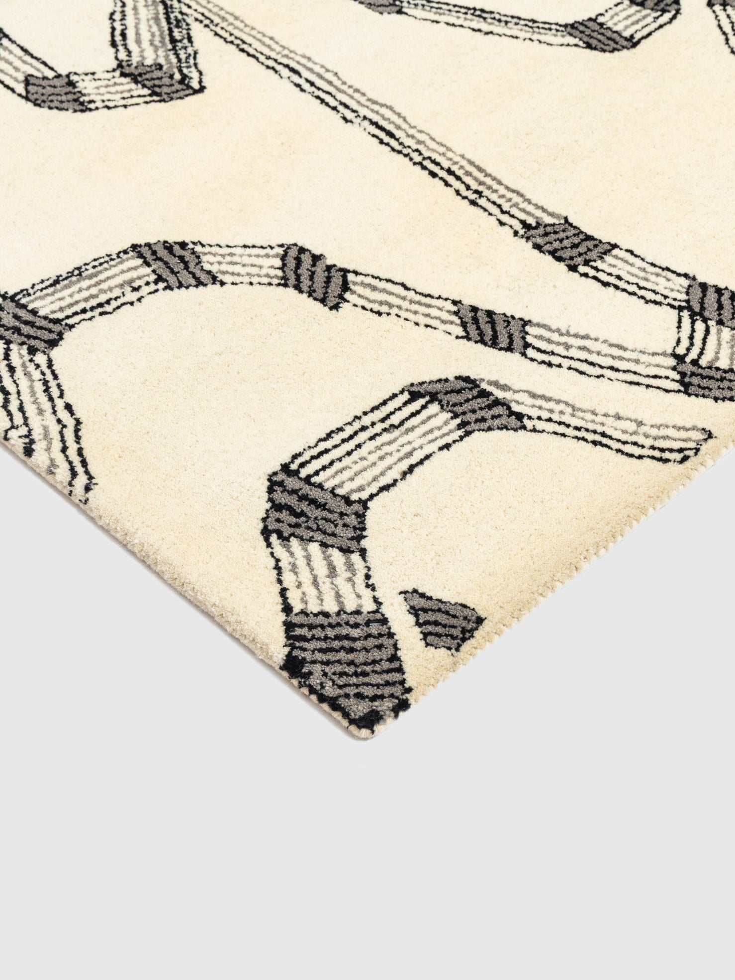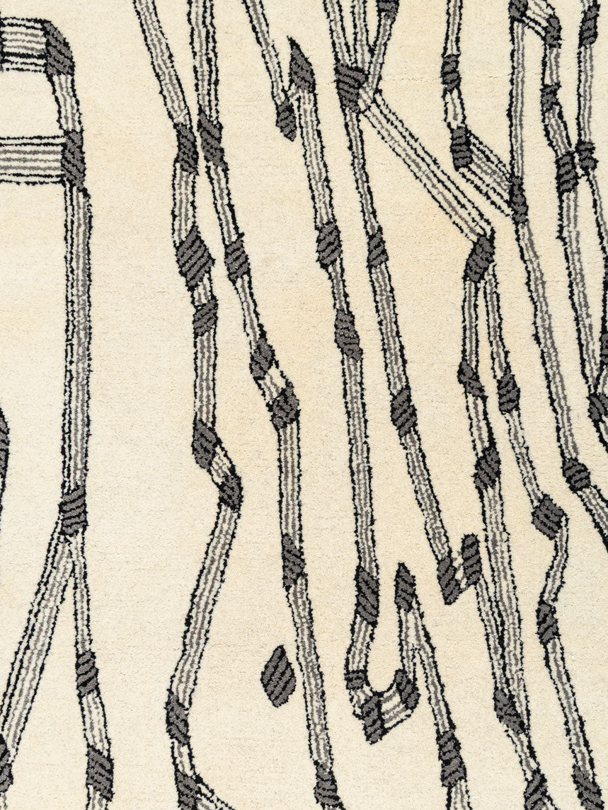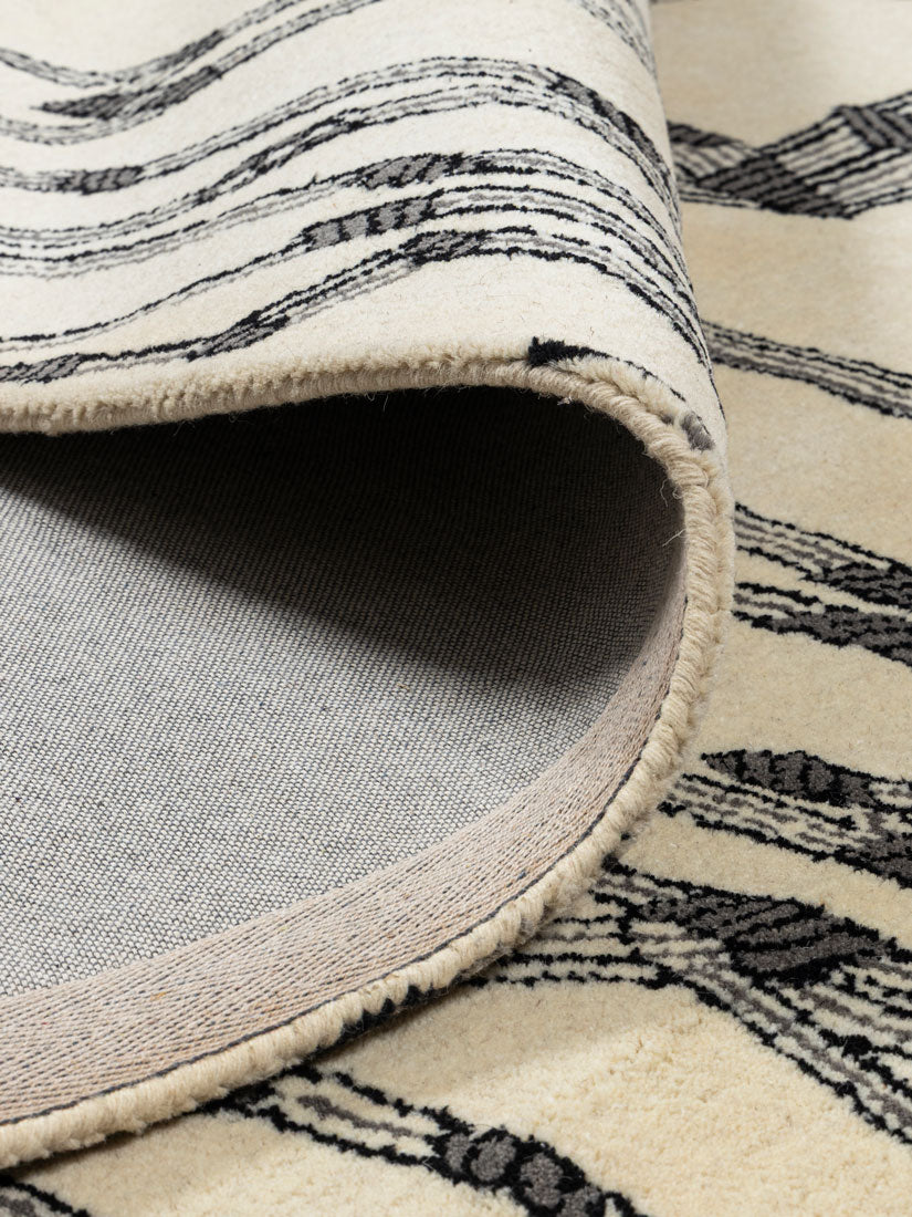 The dense wool pile offers plush comfort along with natural durability and insulation. Its minimal color palette makes it ideal for modern living rooms, creative workspaces and bedrooms that appreciate clean design with artistic expression.