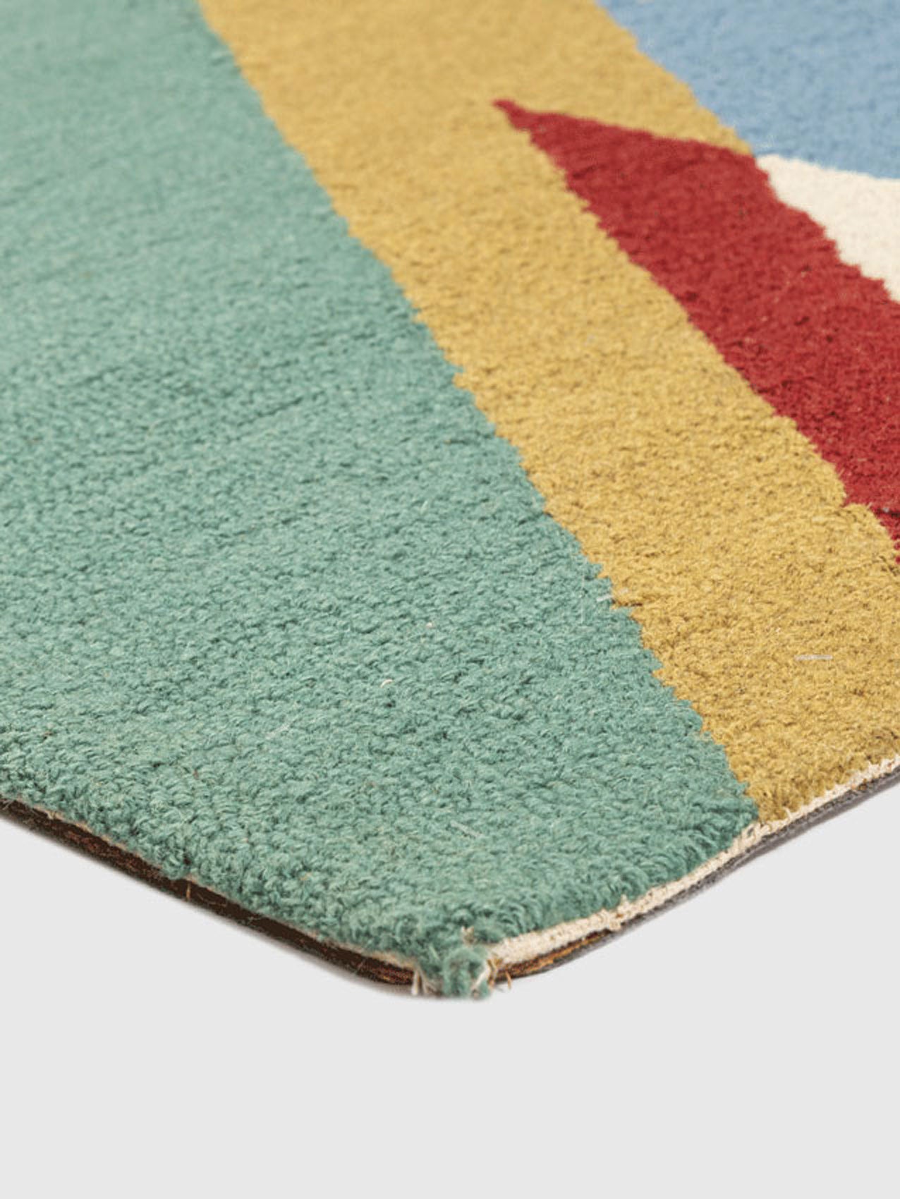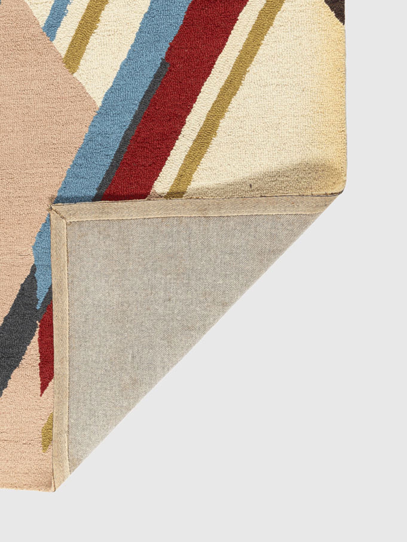 Elevate your space with the dynamic modern design of the Belauri Wool Tufted Carpet. Crafted from high quality wool, this rug features bold intersecting lines and geometric shapes in shades of teal, mustard, deep red, navy and warm neutrals. The sharp angles and layered composition create a striking sense of movement that instantly energises contemporary interiors.