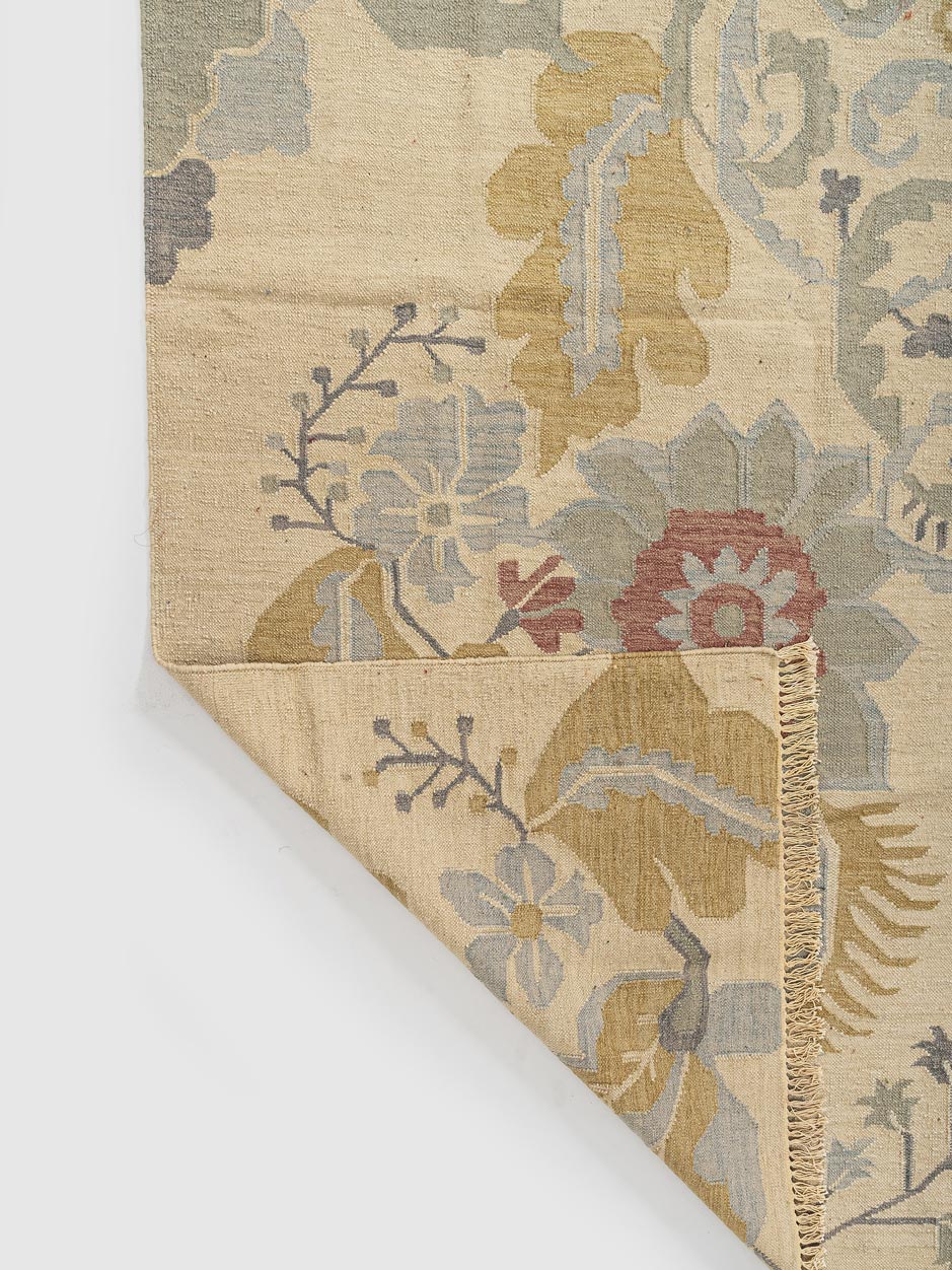 This elegant wool floral rug features a delicate blend of muted tones with intricate botanical designs. Handwoven from premium wool, it brings timeless charm and warmth to any space. Ideal for living rooms, bedrooms, or offices, this floral wool rug complements traditional, vintage, and modern rustic home décor beautifully.
