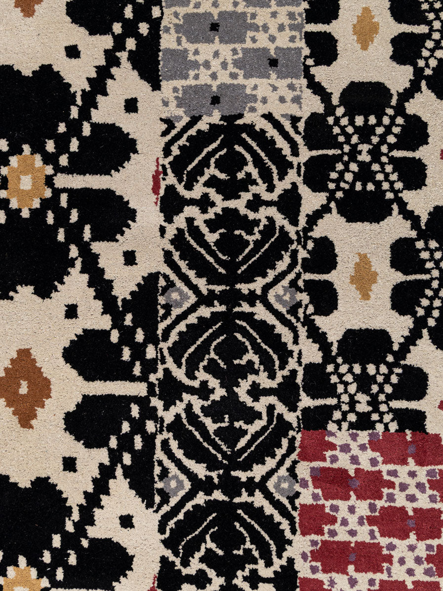 Its hand tufted texture and intricate geometric detailing add depth, rhythm and cultural richness to living rooms, bedrooms and lounge areas. This wool carpet enhances any space with refined craftsmanship, striking visual character and timeless design appeal.