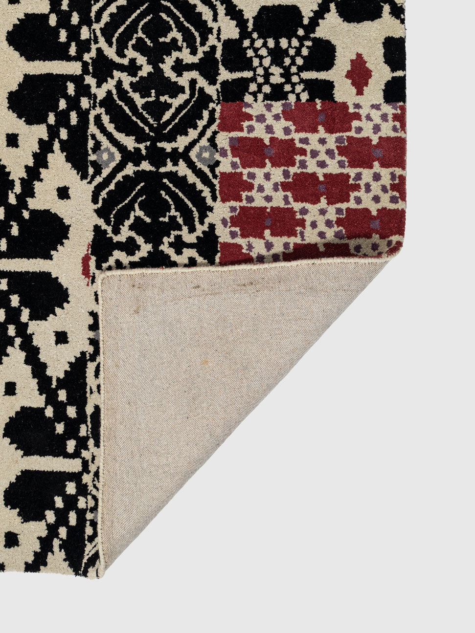 The Bumtang Wool Tufted Carpet celebrates traditional artistry with its bold interplay of black, cream, red and golden motifs arranged in a beautifully structured layout. Crafted from premium wool, it offers exceptional softness, durability and long lasting comfort for everyday living.