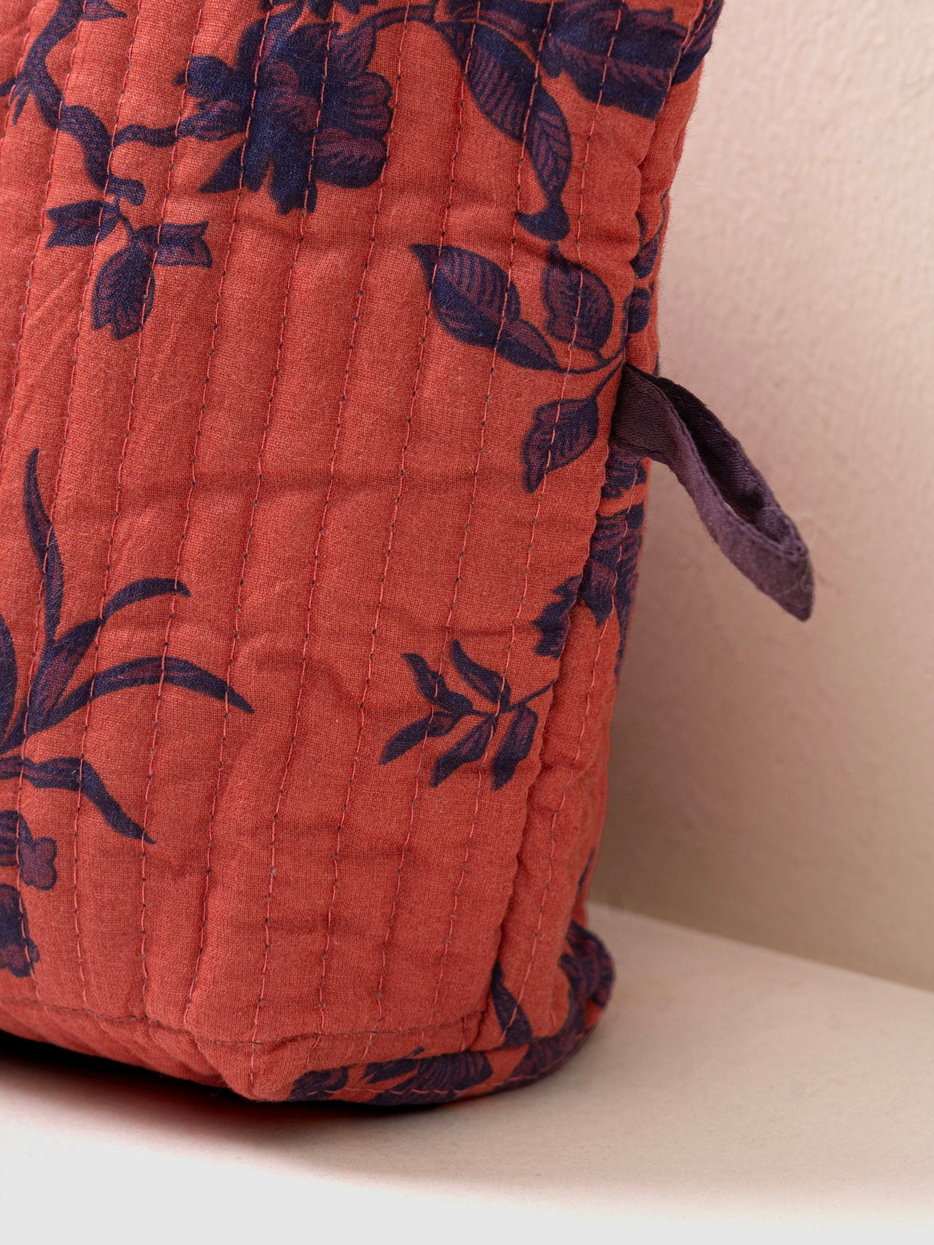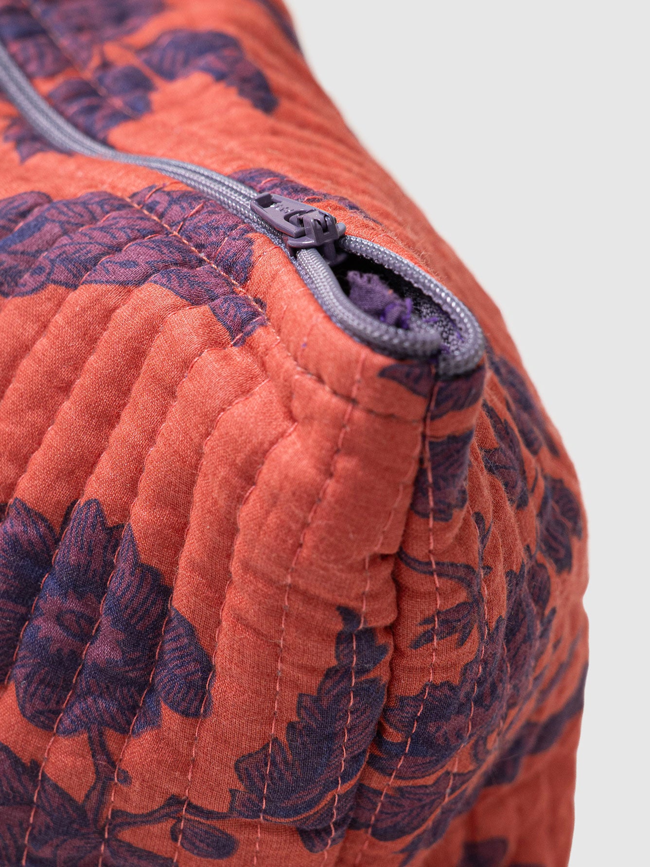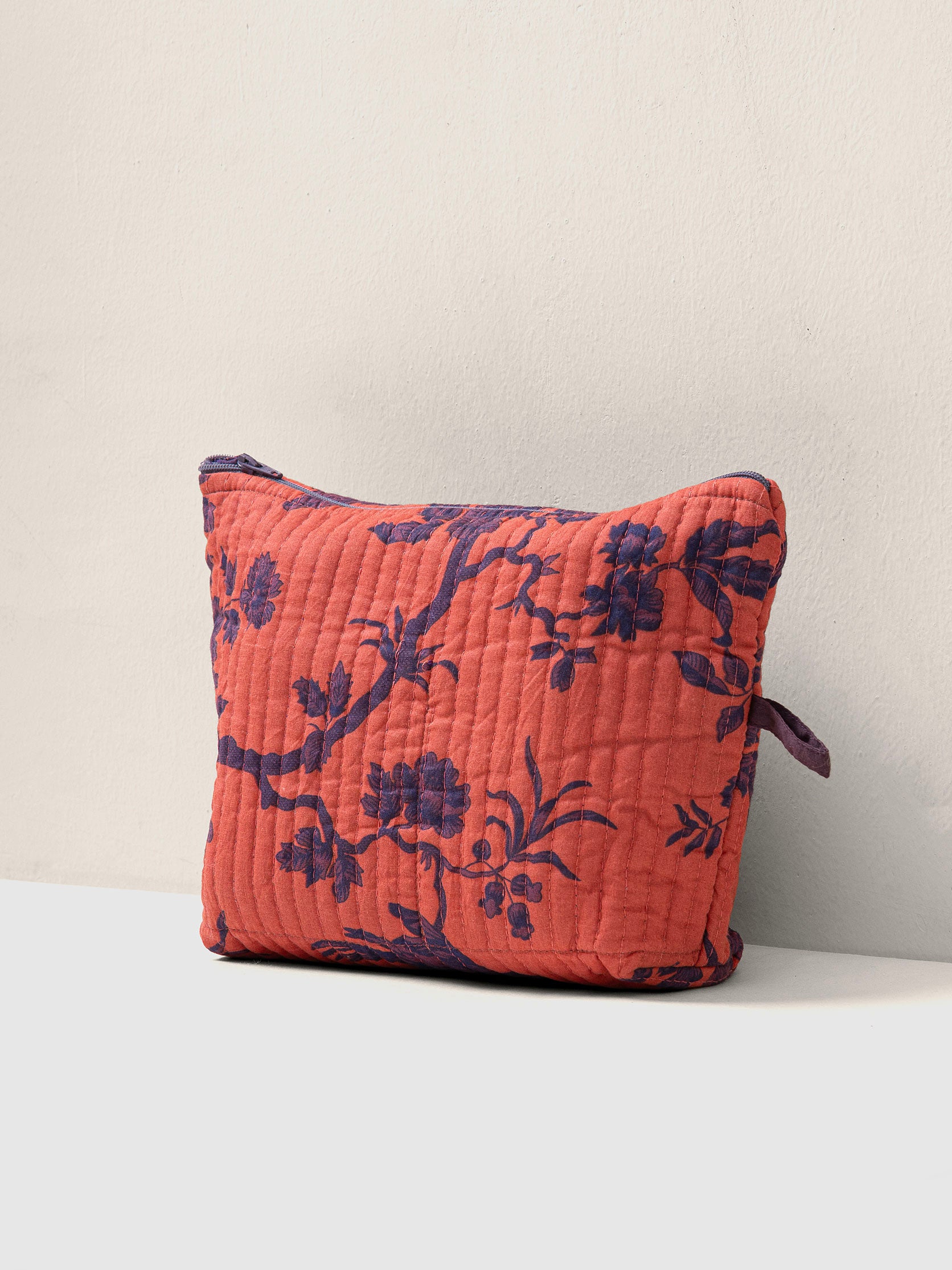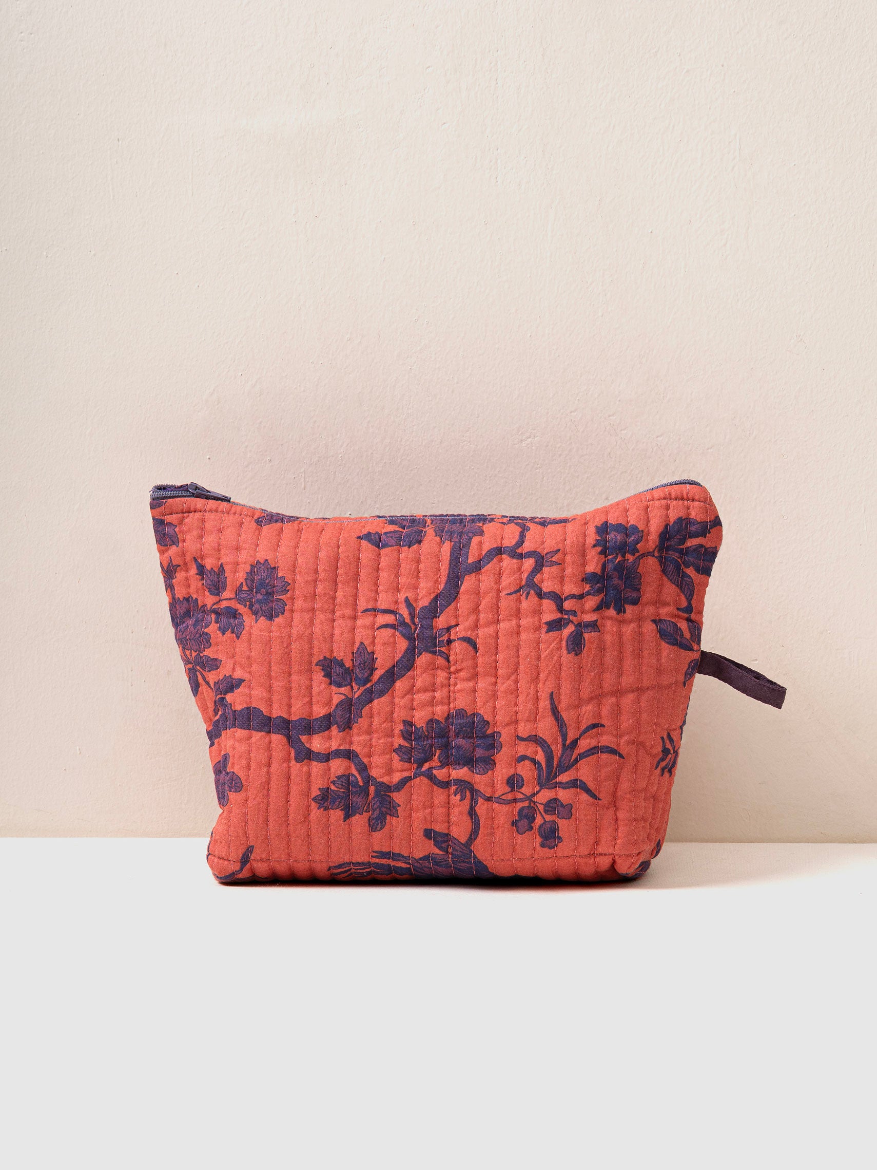 Bright and cheerful, the Coral Bloom Quilted Pouch is perfect for carrying your daily essentials in style. The vibrant coral base with indigo floral motifs adds a touch of charm, while the quilted texture makes it soft yet sturdy. Ideal for travel, makeup, or everyday use, this pouch is as functional as it is beautiful.