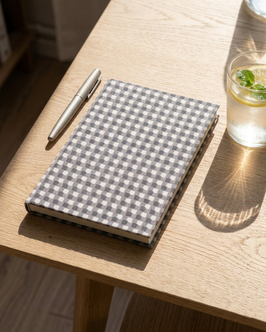 A gentle space for your thoughts, plans, and everyday moments. This checked diary is made to stay by your side, whether on your work desk, in your bag, or beside your bed. Use it for journaling, lists, sketches, or quiet reflections. Light, charming, and easy to carry, it makes writing feel personal and comforting every single day.