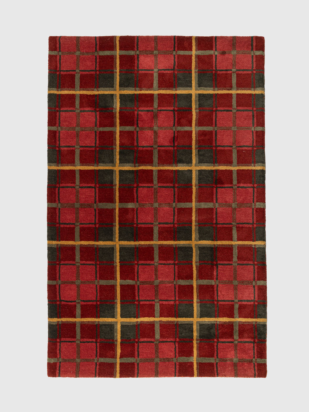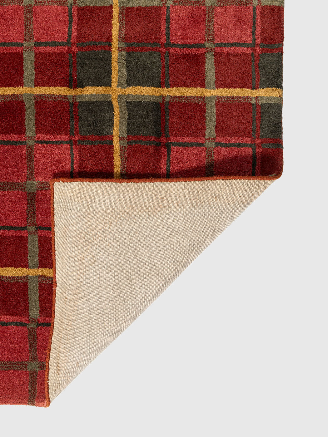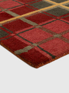 The Kazerun Wool Patch Tufted Carpet blends modern geometry with traditional craftsmanship, featuring a striking grid pattern in deep reds, golds, and earthy undertones. Made from premium-quality wool, it offers exceptional softness, durability, and year-round warmth.