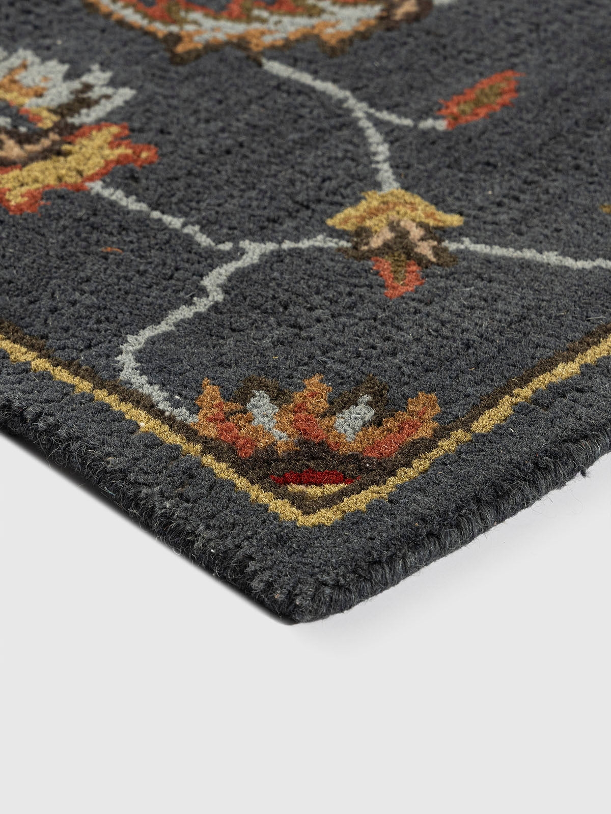 Owning Noorjahan Wool Tufted Rug is like owning a story-one woven in wool, soaked in tradition, and brought to life by the skilled hands of artisans. With its rich midnight base and intricate floral pattern, this hand-tufted rug is a quiet celebration of beauty, heritage, and lasting craftsmanship.