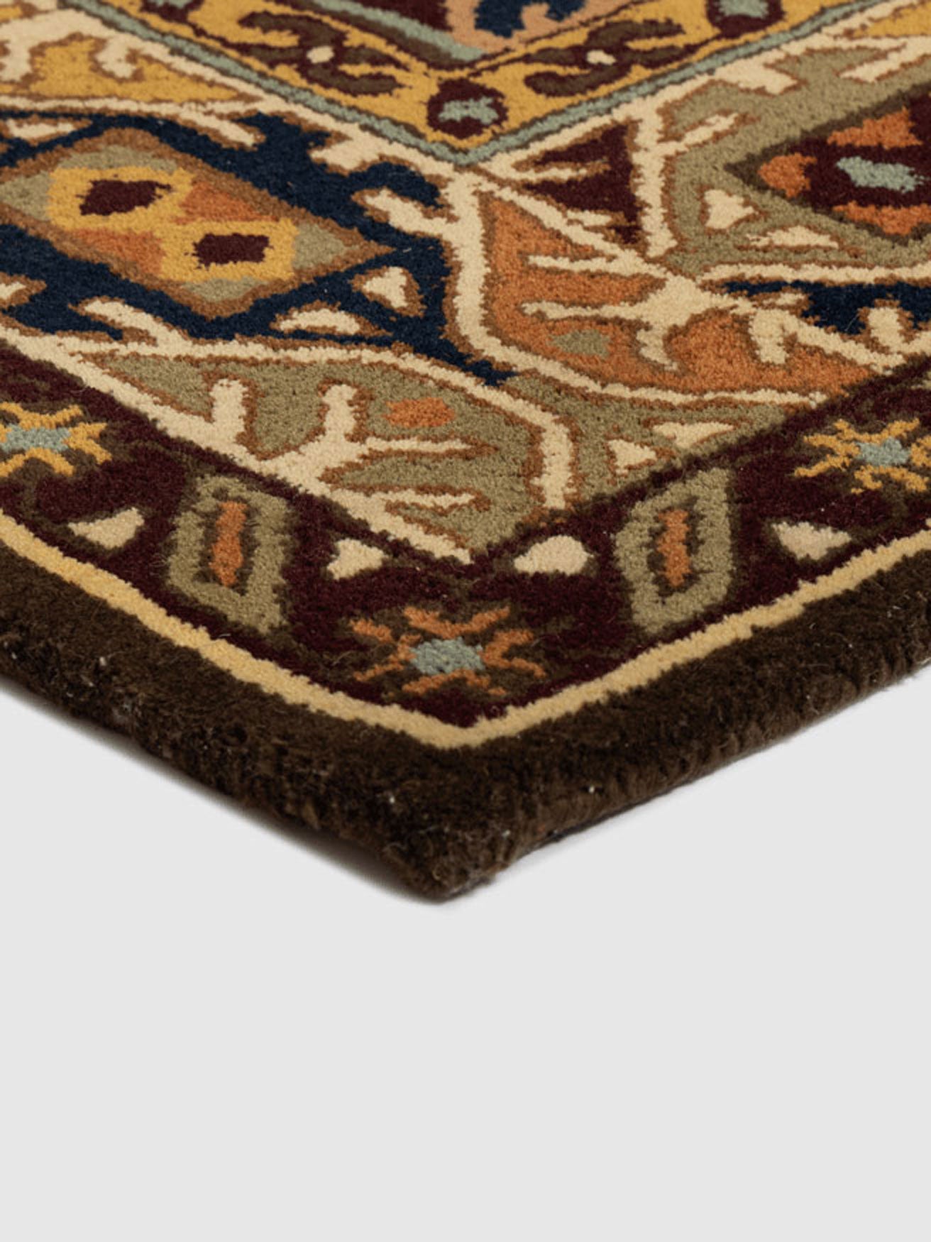 Bring old world elegance and traditional artistry to your home with the Rolpa Wool Tufted Carpet. Crafted from high quality wool, this rug features an intricate medallion centred layout surrounded by beautifully detailed borders. Rich tones of deep bronze, warm gold, muted green, soft brown and earthy charcoal create a regal palette that enhances both classic and modern interiors.