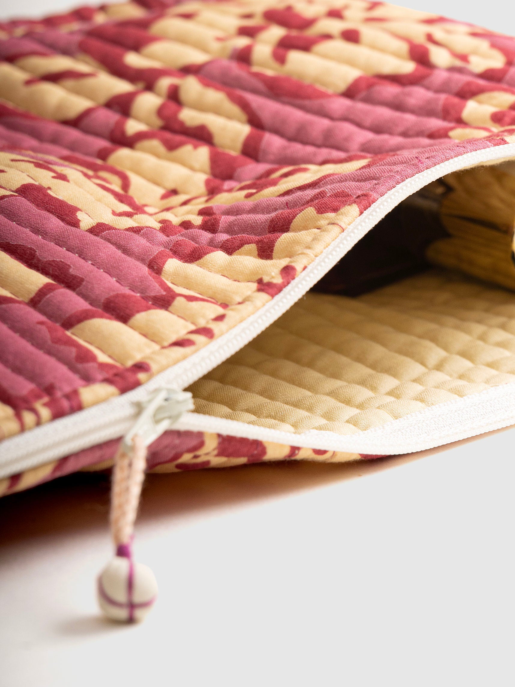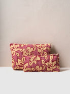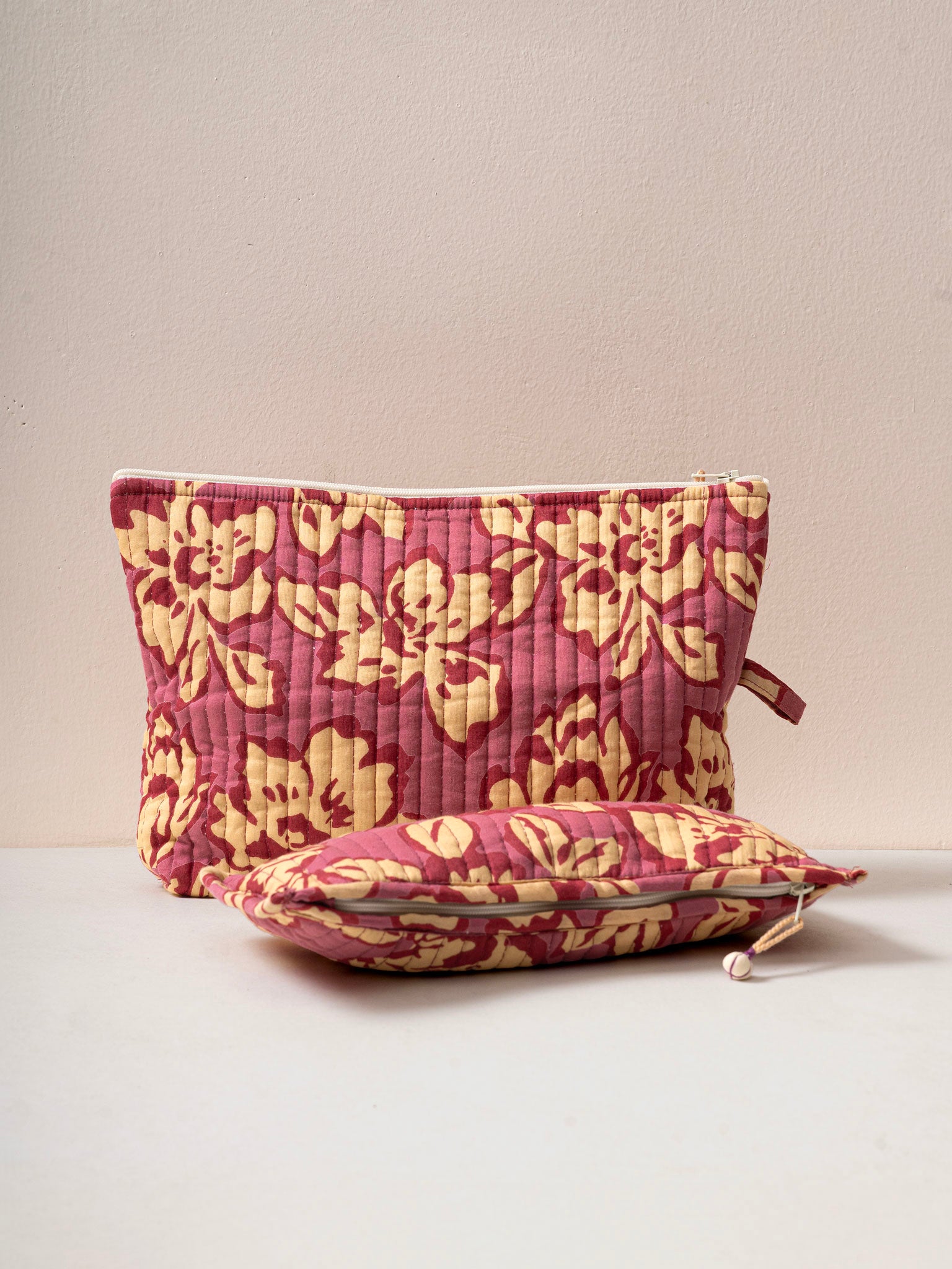 Brighten up your daily routine with our Savera Bloom Pouch Set, featuring two quilted cotton pouches in a stunning maroon and mustard floral print. Handcrafted with care and fully lined for durability, these soft yet structured pouches are designed to hold everything from makeup and toiletries to stationery and travel essentials.