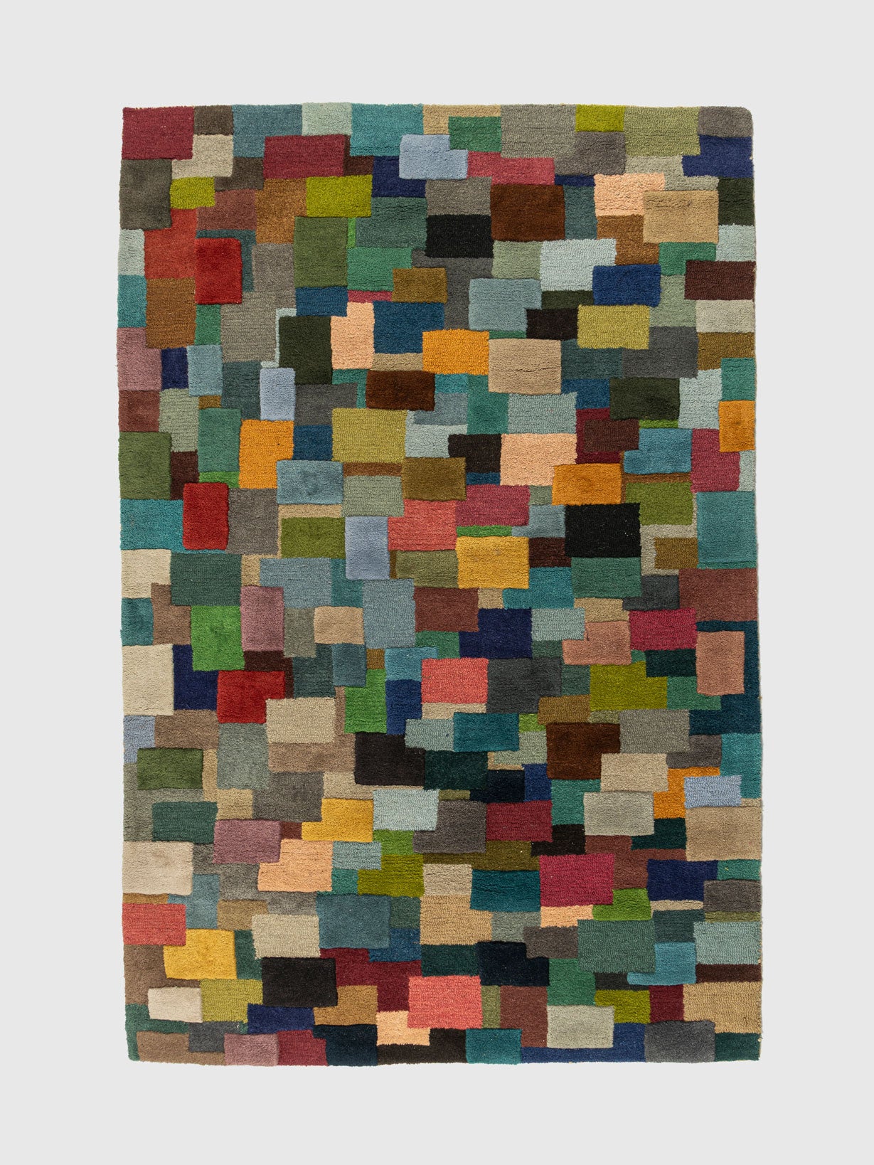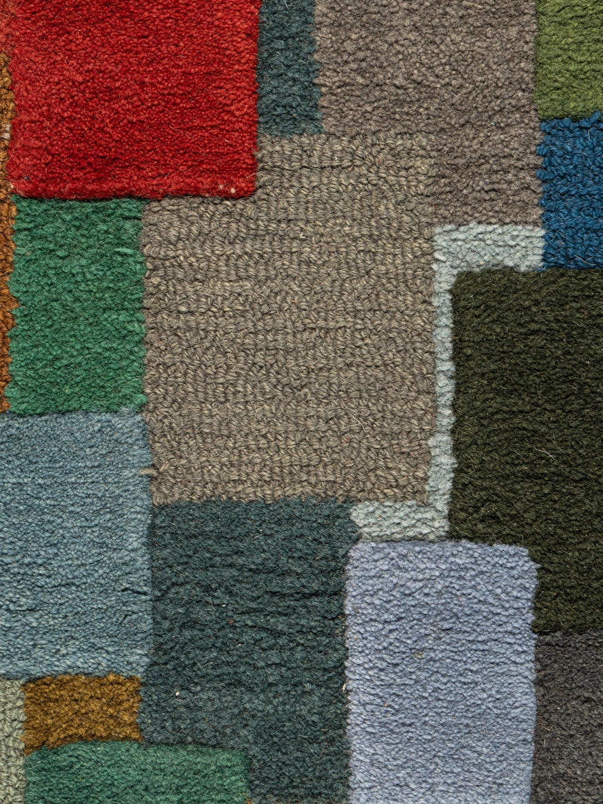 Transform your space with the vibrant artistry of the Sengor Wool Tufted Carpet. Crafted from high quality wool, this design features a lively mosaic of multicolored blocks arranged in an organic patchwork style. Rich shades of teal, olive, rust, mustard, sapphire, terracotta and charcoal come together to create a bold and contemporary visual rhythm.