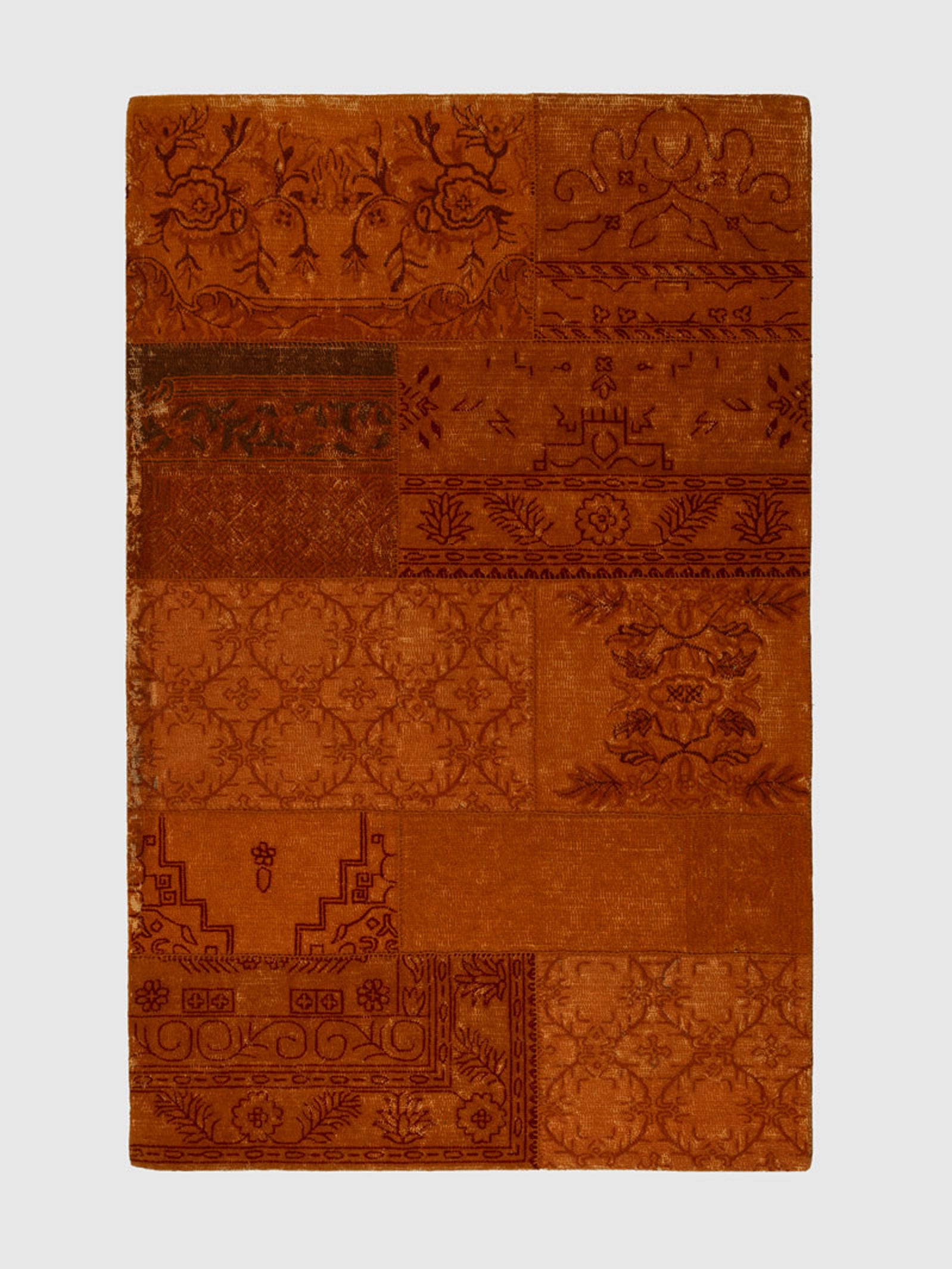 Introduce warmth, depth and traditional artistry to your home with the Shikhar Wool Tufted Carpet. Crafted from high quality wool, this design features a rich patchwork of intricate motifs in deep terracotta and warm burnt orange tones. Each panel carries its own ornamental detailing, creating a tapestry like composition that feels both cultural and contemporary.