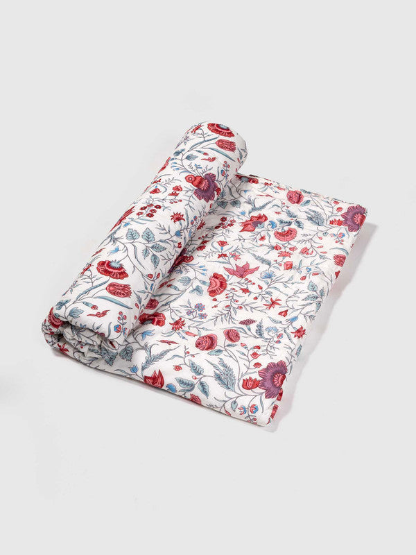 Transform your home with this elegant floral quilt adorned with delicate red and blue botanical patterns. Perfect for a cozy, vintage-inspired vibe, this lightweight quilt complements any bedroom or living space. Crafted for comfort and style, it is ideal for year-round use as a layer or standalone accent piece.