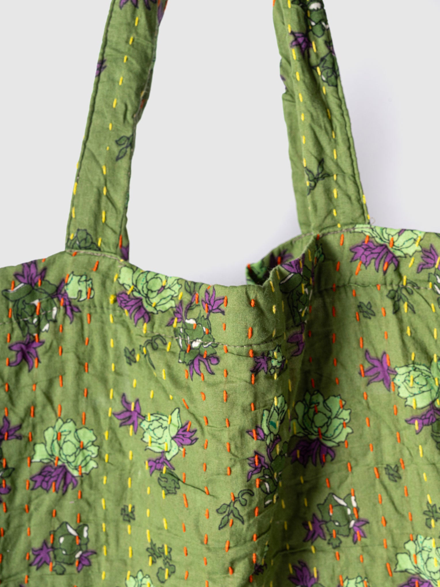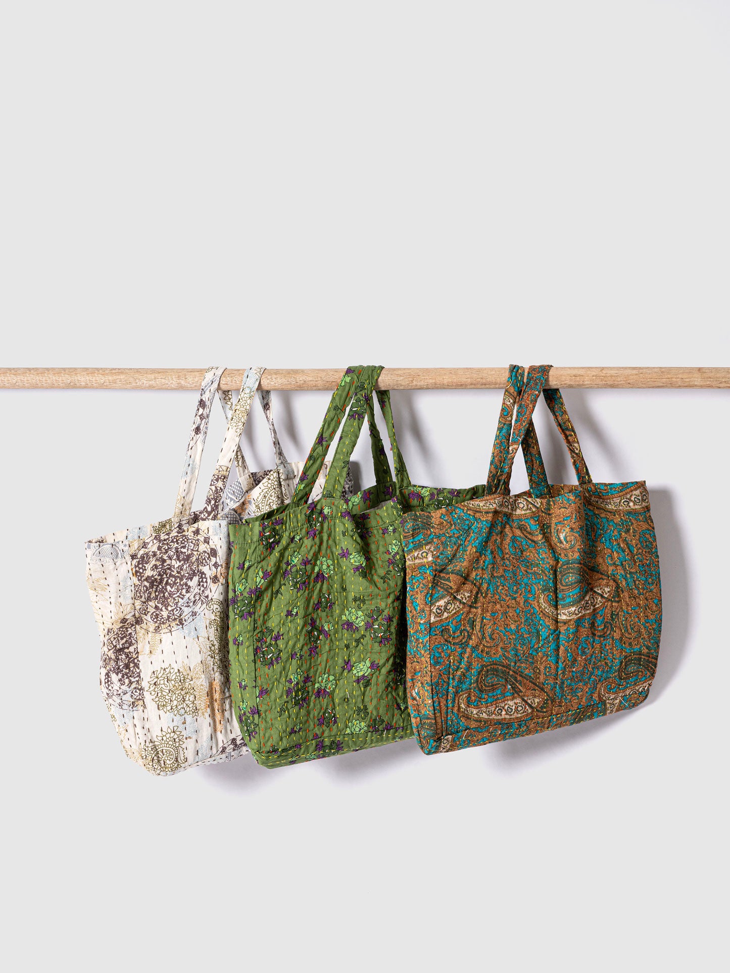 Crafted from upcycled textiles and hand-stitched using the age-old Kantha technique, each tote in this set is one of a kind. Lightweight, roomy, and full of character, they celebrate mindful living and everyday beauty.