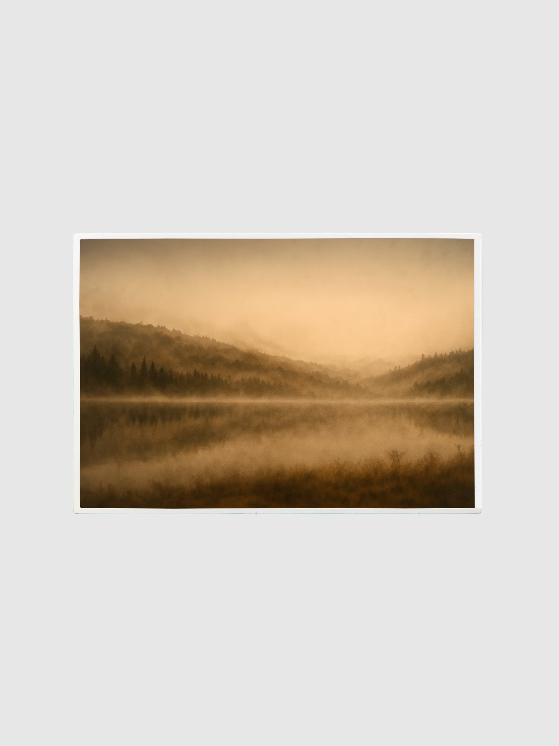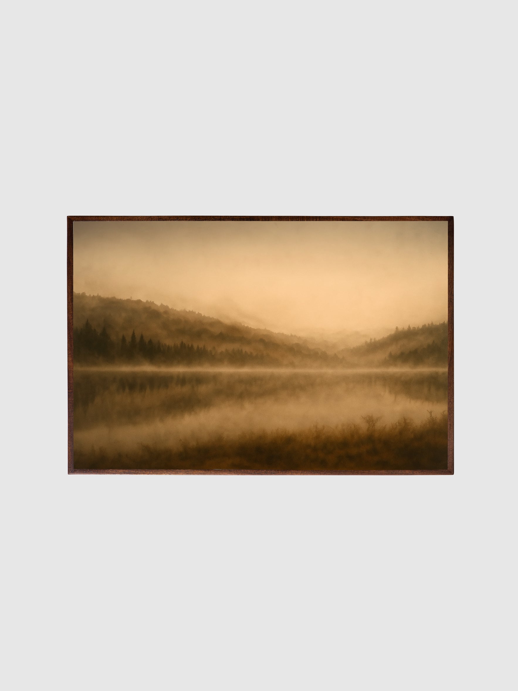 The Resting Earth is a serene meditation on nature’s quiet beauty, capturing a misty landscape where still waters mirror the soft rise of distant hills. The warm earthy tones and delicate layering create a tranquil atmosphere that evokes peace, balance, and reflection.