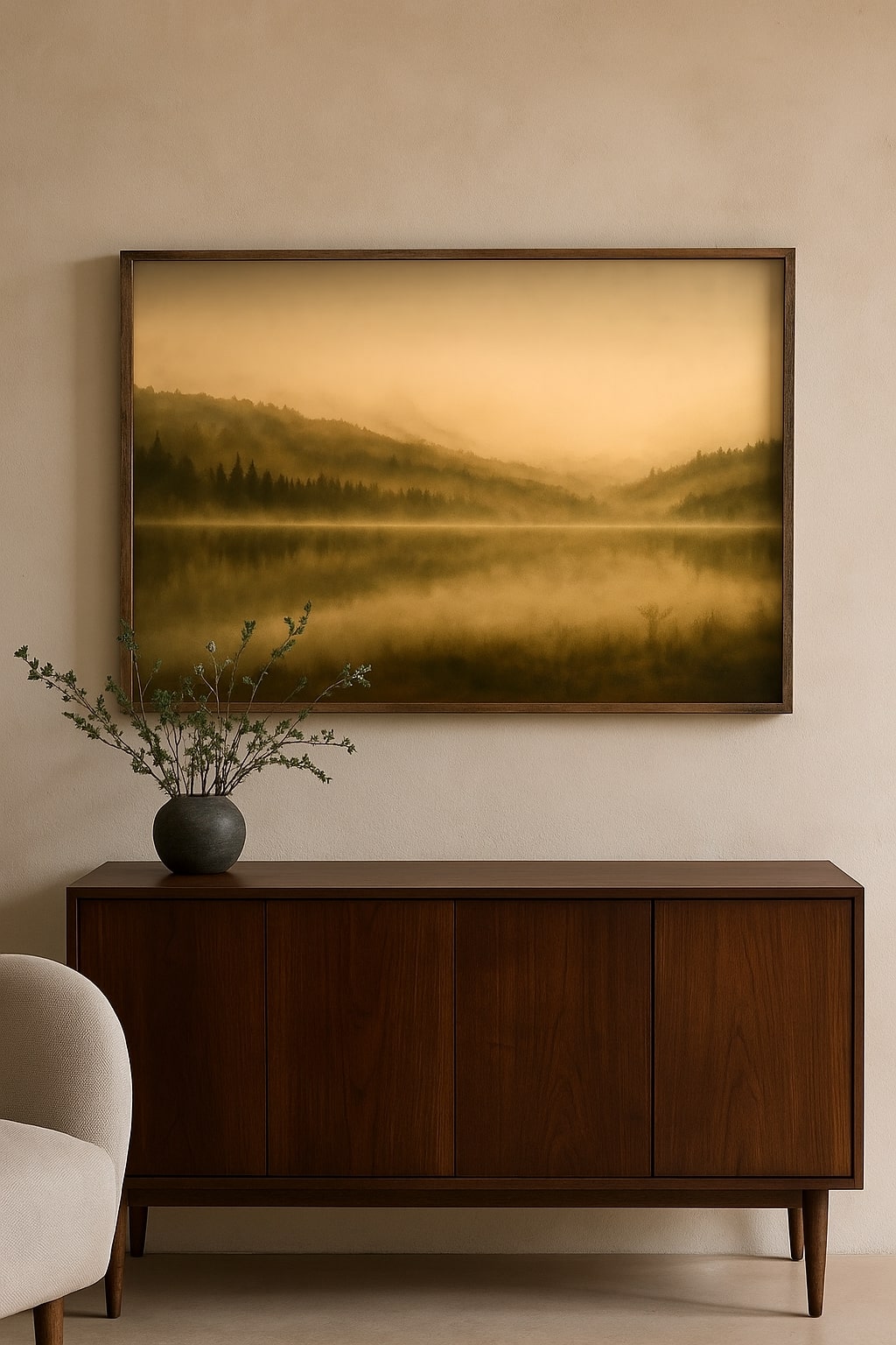 Perfect for bedrooms, living rooms, or spaces meant for rest and mindfulness, The Resting Earth brings an aura of warmth and quiet strength to your interiors. It is a window into stillness and the eternal beauty of the land.