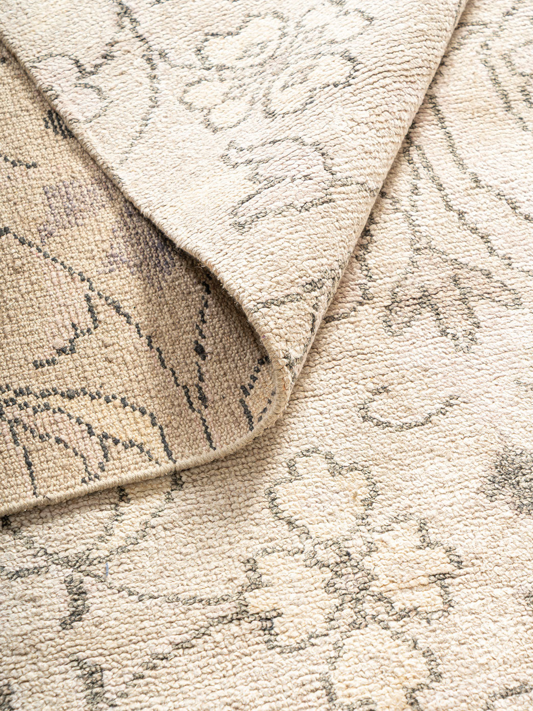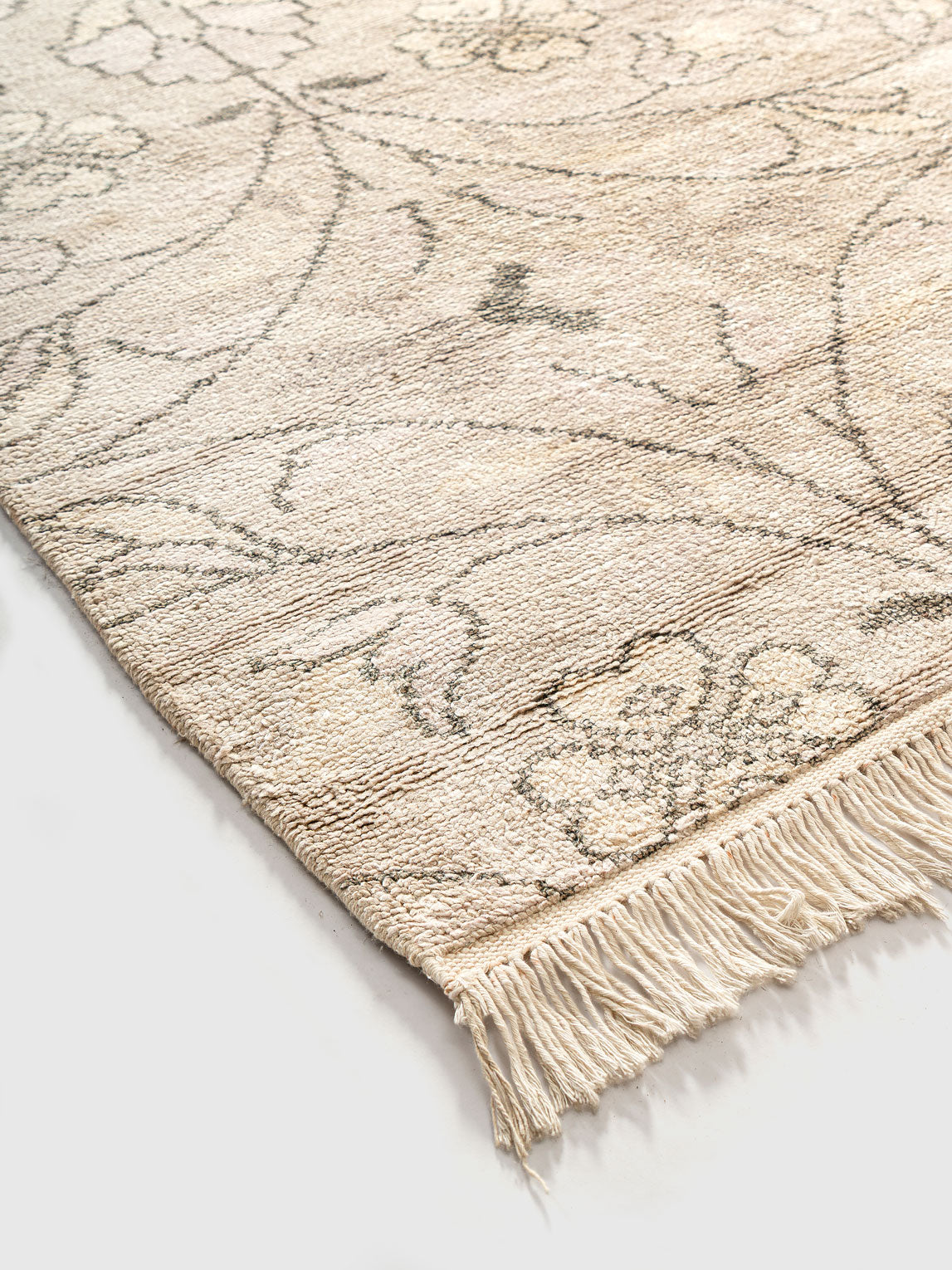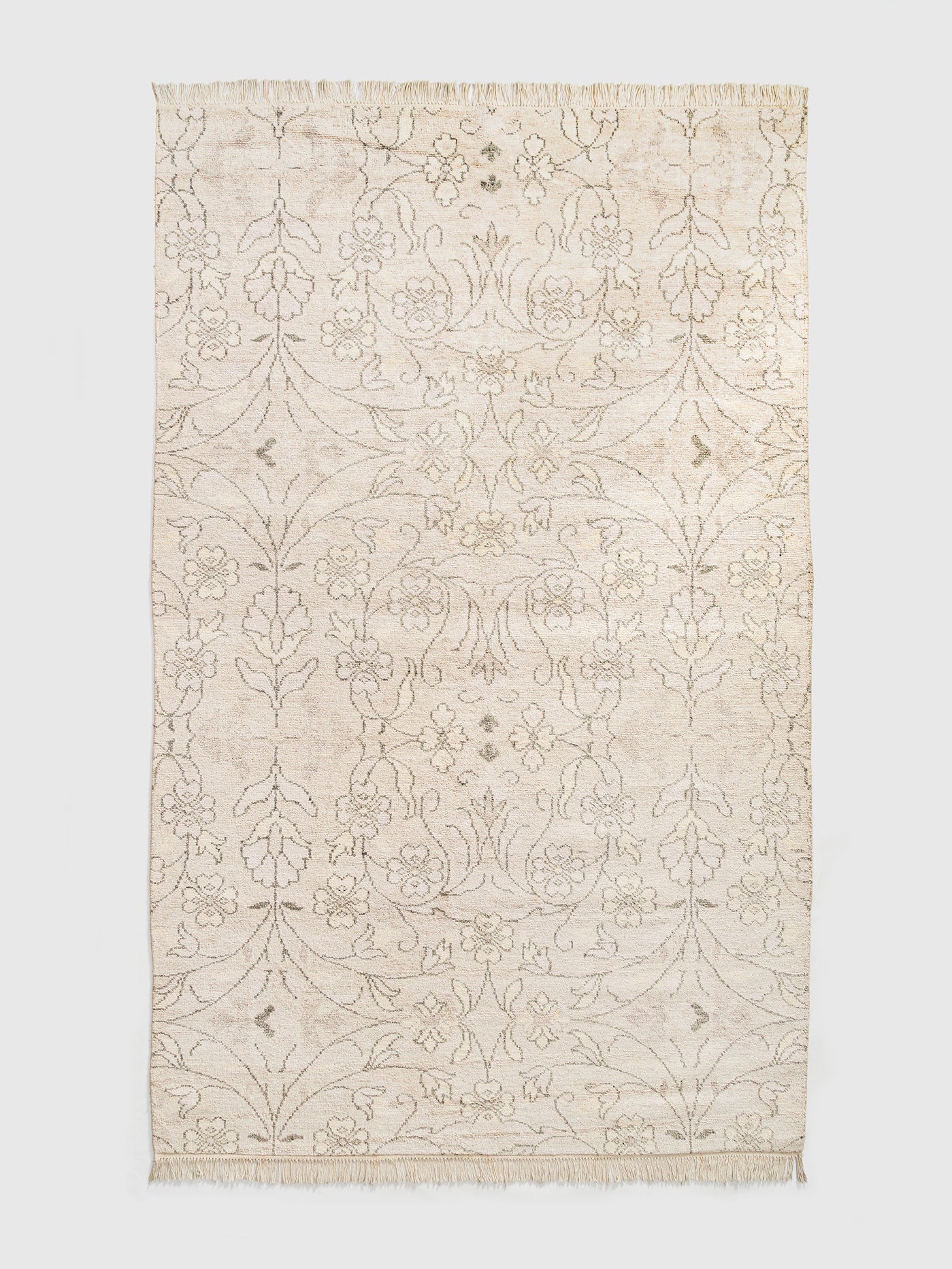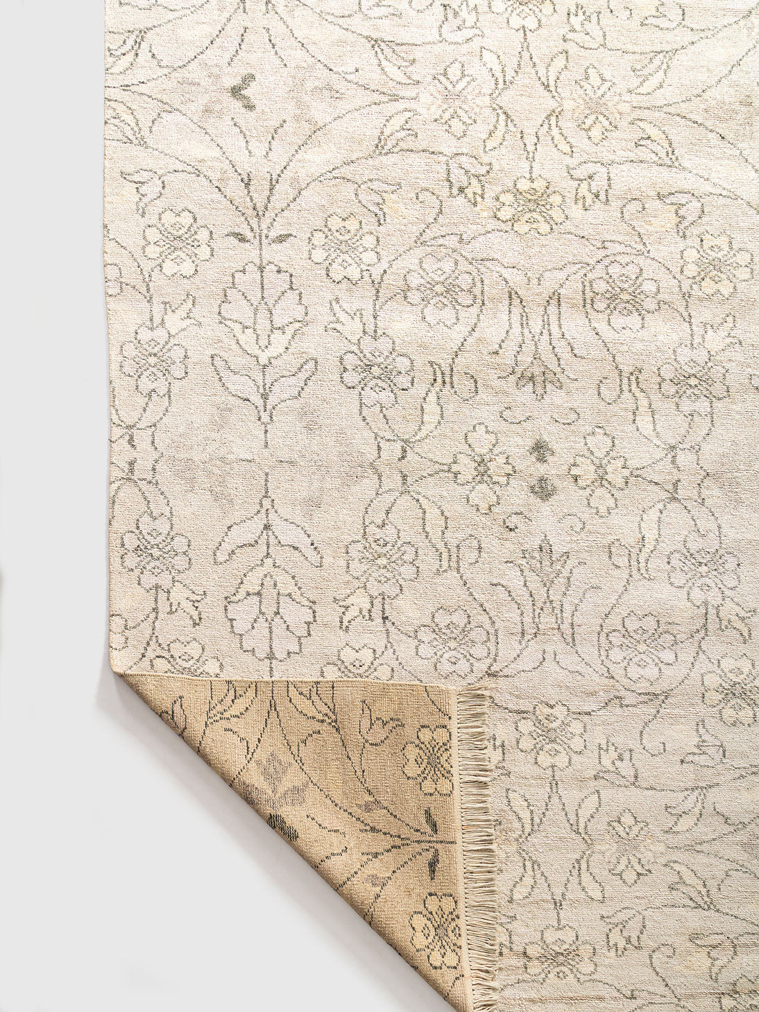 The Trakar Viscose Hand-Knotted Carpet is a masterpiece of subtle luxury. With its cream-beige palette and flowing floral vines, it adds depth and character without overwhelming your décor. Crafted from premium viscose, its silky sheen and soft texture create a sophisticated finish. Ideal for bedrooms, lounges, or living rooms, this rug enhances interiors with timeless charm, offering both durability and refined beauty for everyday use.