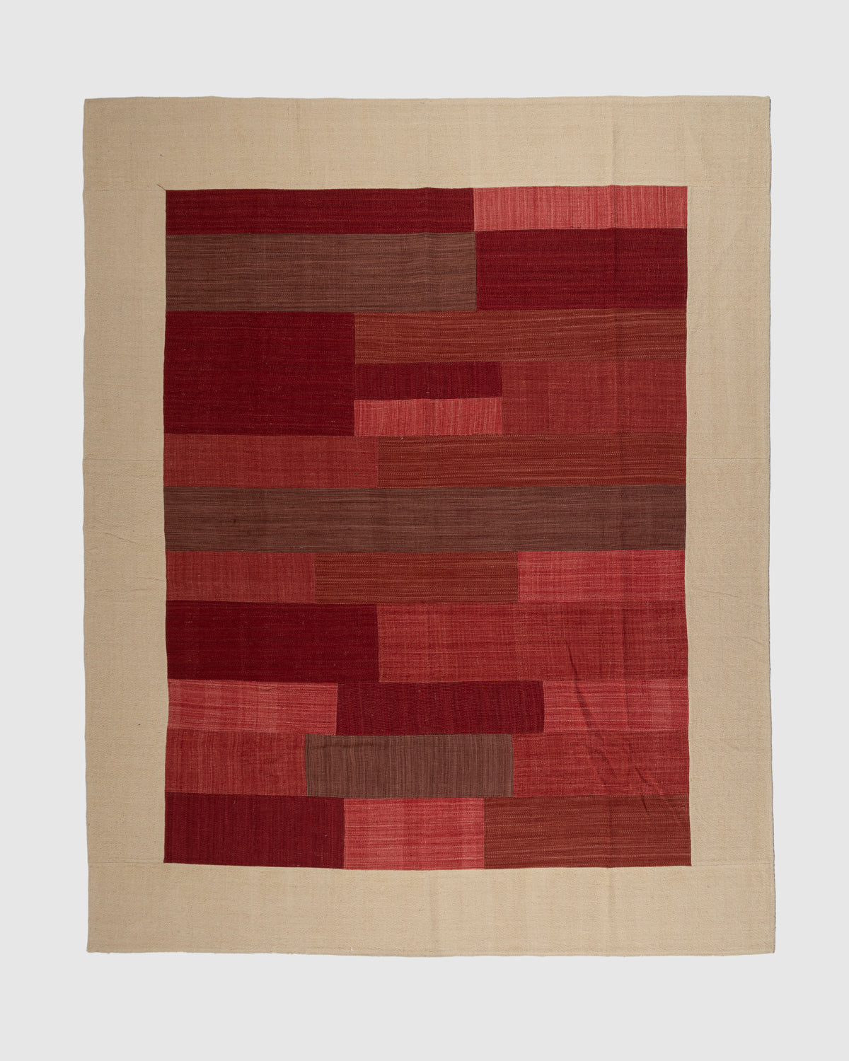Infuse your space with warmth, craftsmanship and modern artistry with the Tupen Wool Patch Rug, a beautifully handcrafted piece made from individually woven wool panels. This striking rug features a rich palette of reds, from deep maroon and wine to warm terracotta and muted clay, arranged in a rhythmic patchwork layout that creates depth, texture and visual movement. Each panel showcases its own unique weave pattern, adding authenticity and tactile richness to the composition.