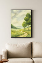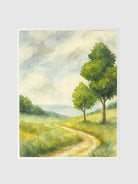 Wanderer’s Way is an ode to journeys both taken and imagined, depicting a sunlit path that winds gently through open meadows beneath the shelter of tall green trees. This printed canvas artwork evokes the quiet joy of wandering, where every step carries the promise of discovery and peace.