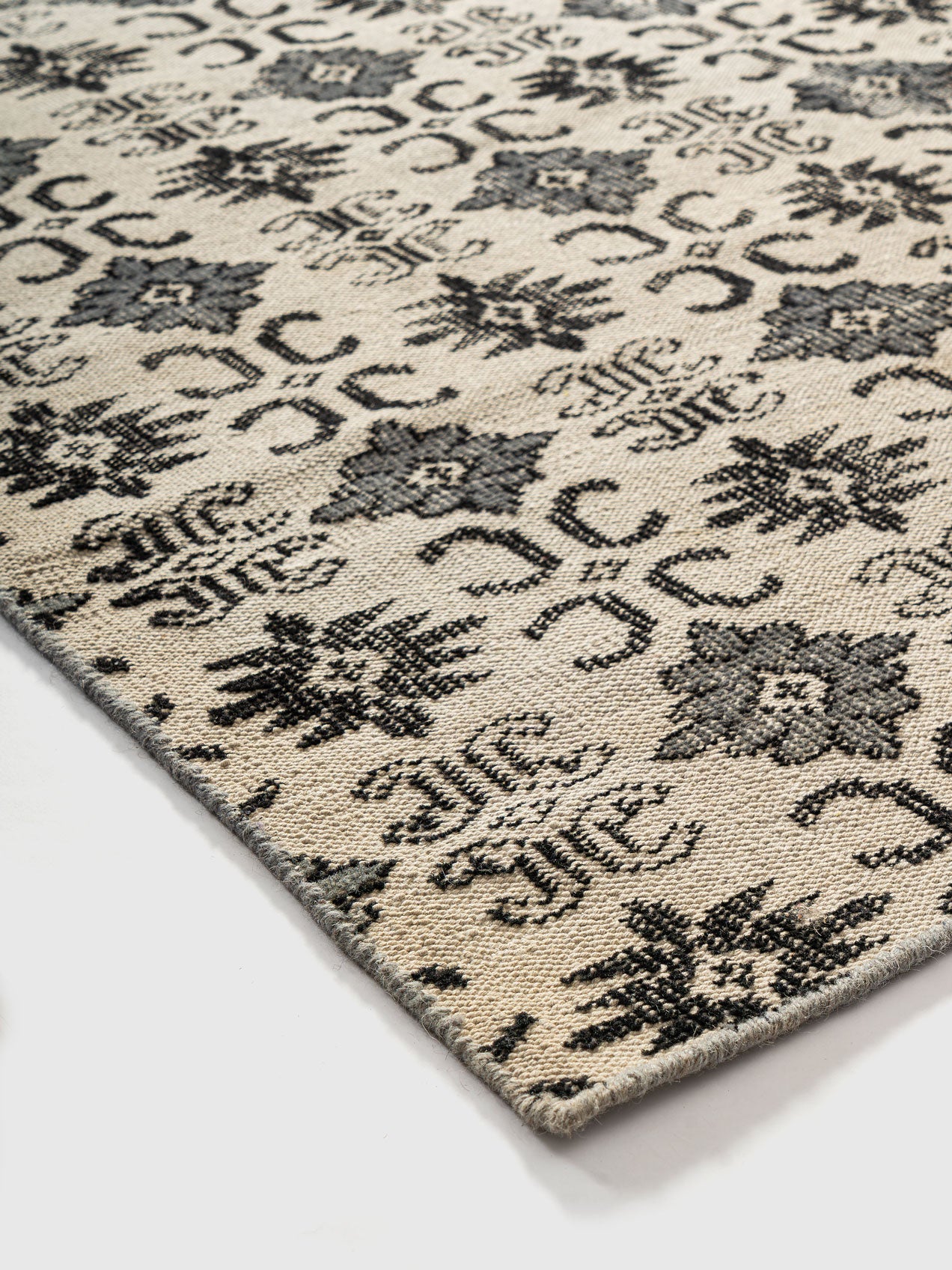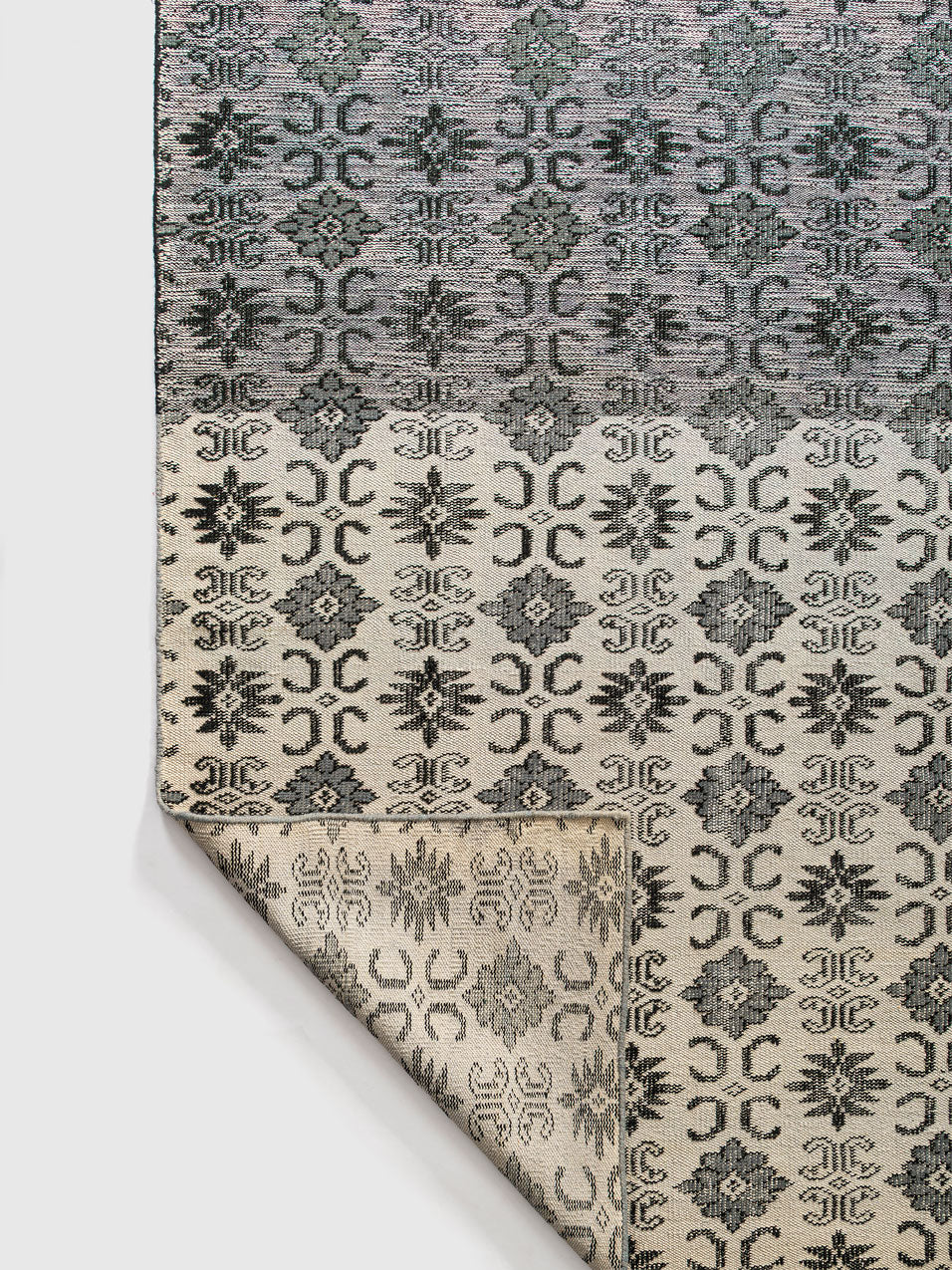 Designed to elevate interiors, the Zincha Wool Knotted Carpet stands out with its ombré effect, blending deep charcoal shades into cream. The intricate motifs woven across the surface add heritage charm while maintaining a modern appeal. Hand-knotted from wool, it provides a soft touch and reliable durability. This versatile rug is perfect for creating a stylish statement in living rooms, bedrooms, or hallways.