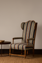 The Ametrine Wooden Upholstered Armchair is a regal statement piece for refined interiors. Its tall backrest, winged sides, and intricate wooden frame evoke classic charm, while the vibrant patterned fabric adds a modern edge. Designed with cushioned seating and supportive armrests, it offers both comfort and grandeur. Perfect for formal living rooms, libraries, reading nooks, traditional lounges, vintage-inspired bedrooms, or eclectic interiors, Ametrine blends heritage design with practical elegance. A striking armchair that enhances interiors with sophistication, tradition, and bold personality.