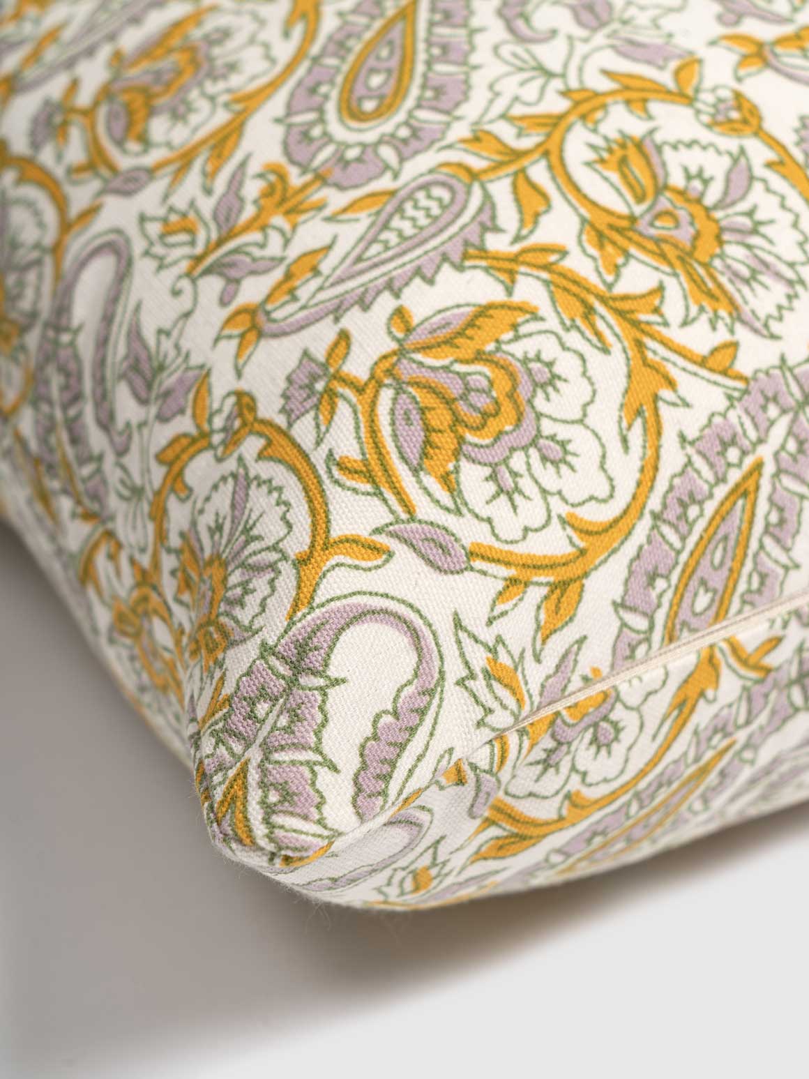 Elevate your living space with this exquisitely hand-printed Cushion Cover, meticulously crafted from high-quality duck fabric. The design features an ornate, traditional paisley pattern, promising to infuse a touch of sophisticated charm and timeless elegance into the room.