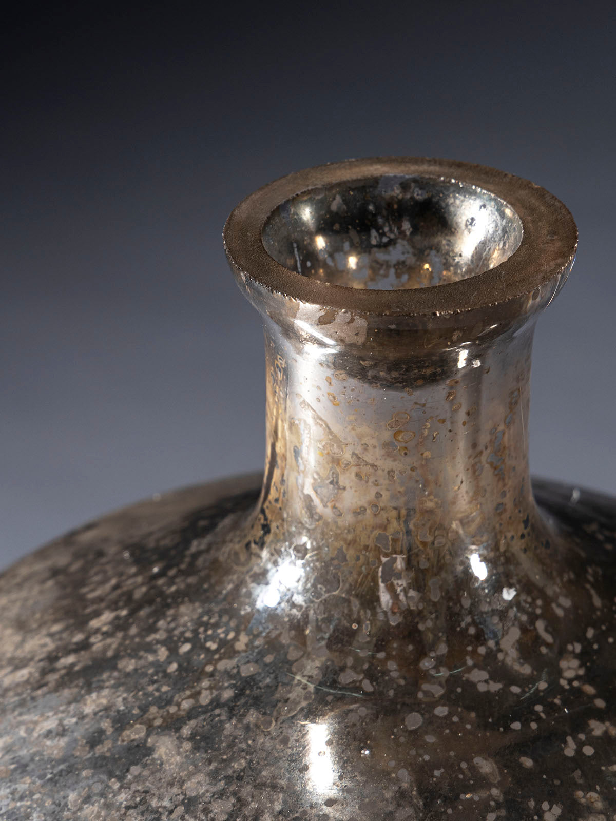 The Sidli Glass Vase is a stunning blend of vintage charm and modern elegance. Handcrafted in antique mercury glass, its wide, rounded silhouette with a narrow neck creates a striking statement. Perfect for fresh flowers, dried branches, or as a standalone decorative accent, this vase reflects light beautifully, adding warmth and sophistication to any room. A versatile piece that elevates mantels, consoles, and festive arrangements.