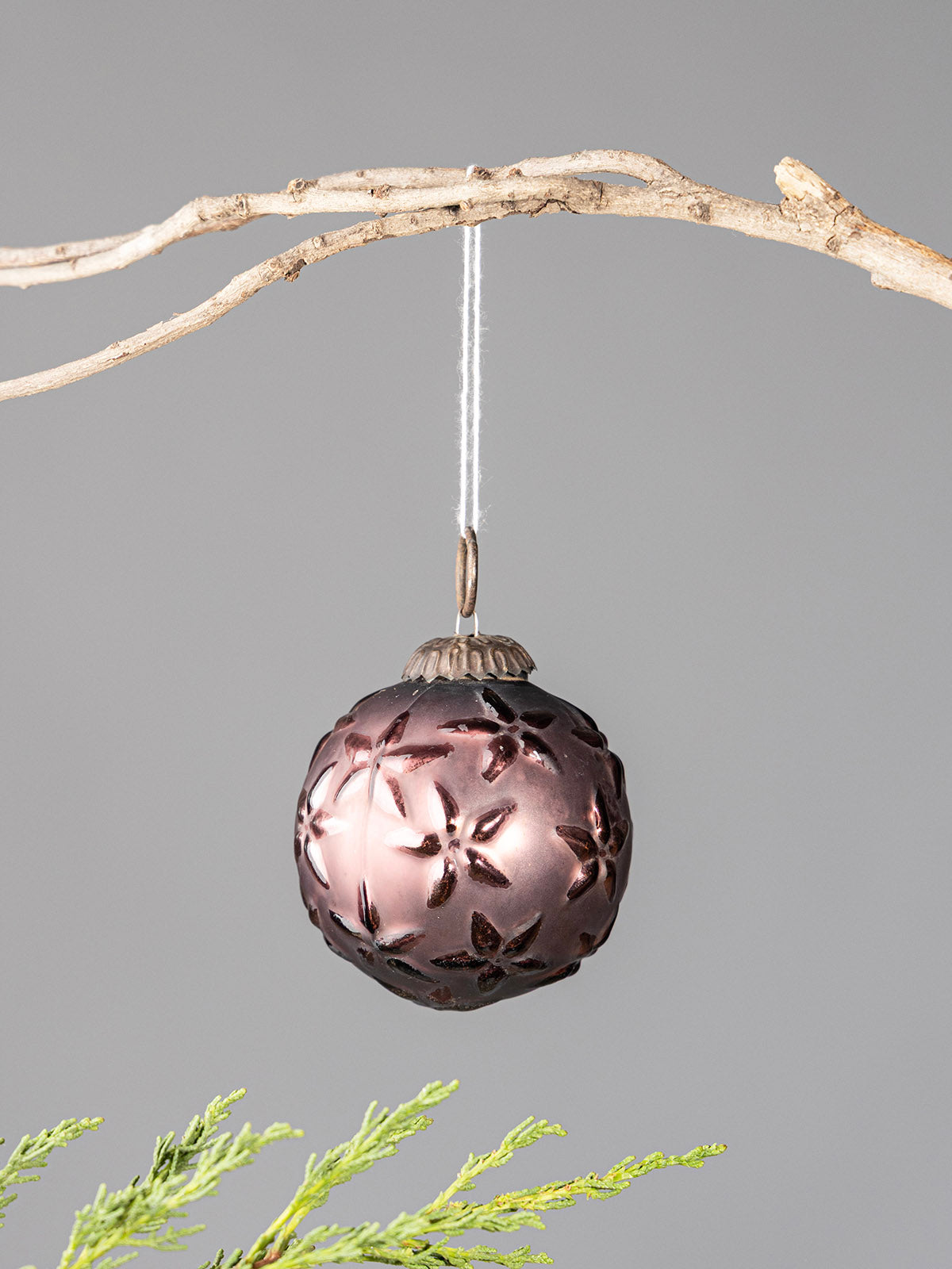 Bring a touch of delicate artistry to your festive décor with the Frunza Mercury Christmas Ornaments. Designed in a soft berry toned hue, each ornament features an intricate leaf inspired pattern that adds depth, elegance and a beautifully crafted feel. The mercury glass finish creates a gentle glow when the lights reflect on it, giving your tree an enchanting and refined sparkle.