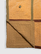 This velvet quilt features a unique grid design with tufted buttons and earthy beige tones, hand-quilted for a rich texture. Ideal for adding structured elegance to interiors, it functions beautifully as a throw or bedspread. This handcrafted quilt is a cozy, decorative accent for luxury living spaces.