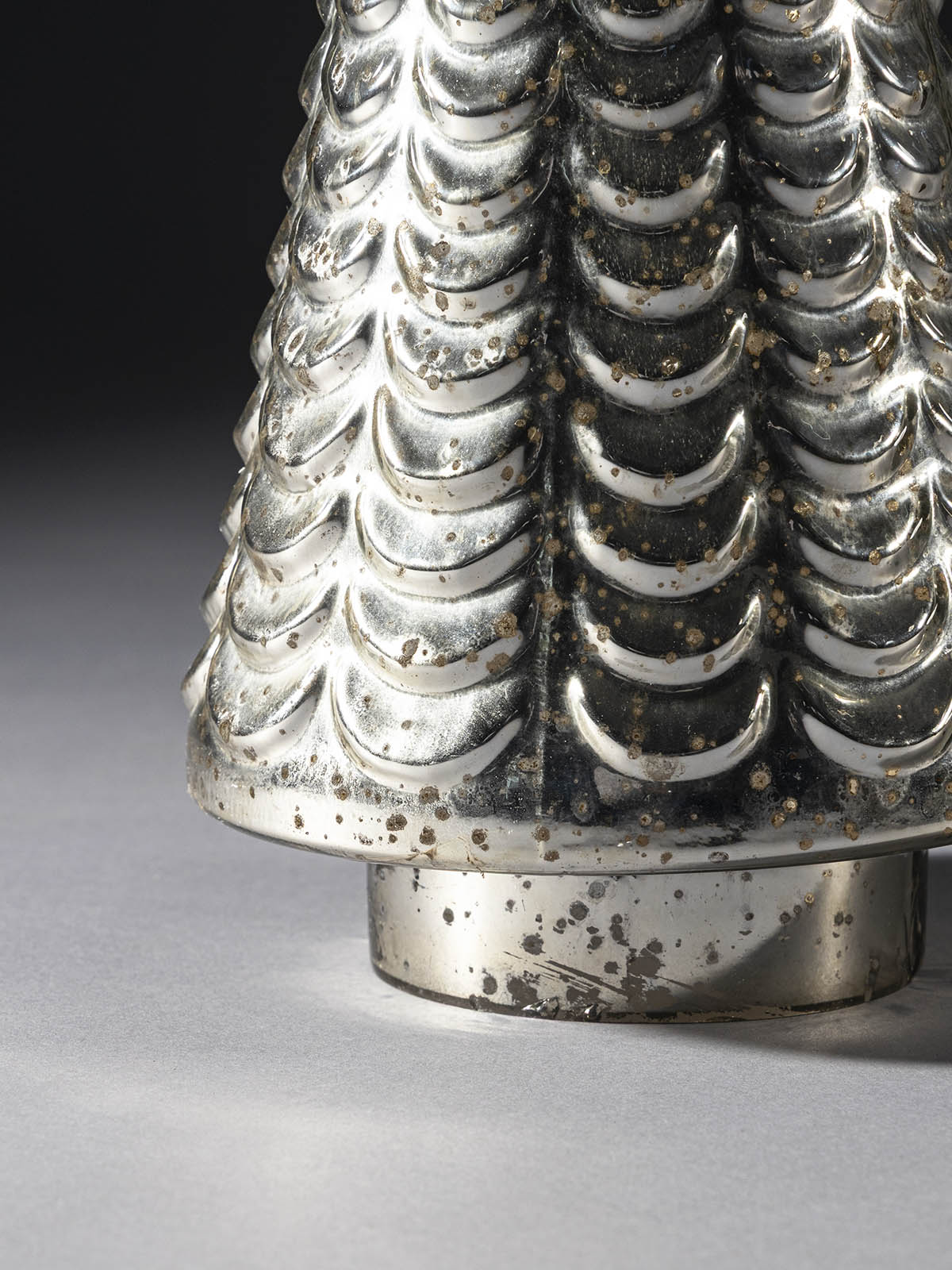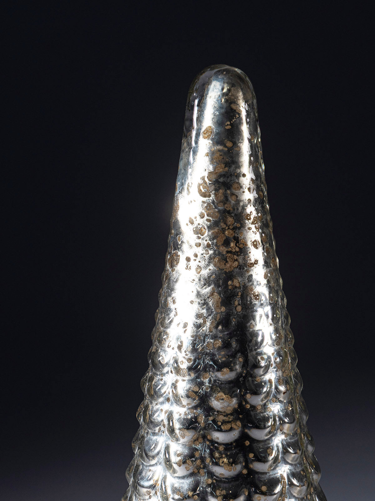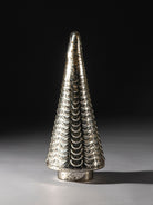 Bring home festive nostalgia with the Dhubri Antique Glass Christmas Tree, crafted in shimmering mercury glass with a detailed scalloped pattern. Its vintage-inspired design catches and reflects light, adding warmth to your holiday décor. Perfect for mantel displays, tabletops, or festive centerpieces, this handcrafted décor piece creates an enchanting Christmas ambiance. Pair with candles or ornaments for a magical, timeless seasonal setting.