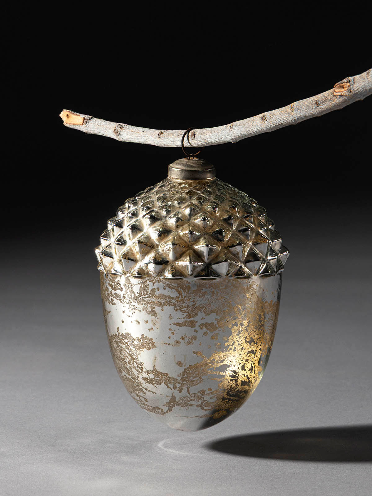 Celebrate the holidays with the Majuli Glass Decorative Object, a handcrafted ornament in lustrous mercury glass. Its acorn-like design and antique finish create a nostalgic festive glow, perfect for Christmas trees, wreaths, or table styling. Blending artisanal craftsmanship with seasonal elegance, this decorative piece transforms ordinary corners into magical, inviting spaces. A timeless accent that carries warmth and charm beyond the holiday season.